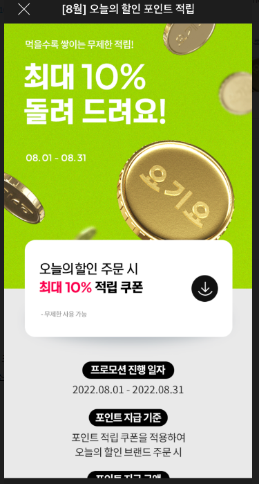 오늘의할인 주문시 최대 10% 적립 쿠폰