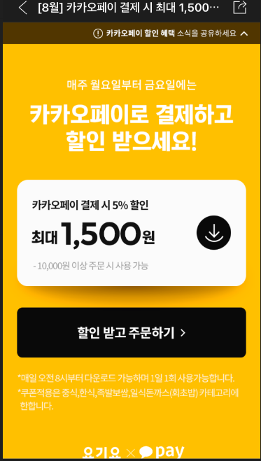 네이버페이 x 요기요 1천원 할인쿠폰(1만원이상)