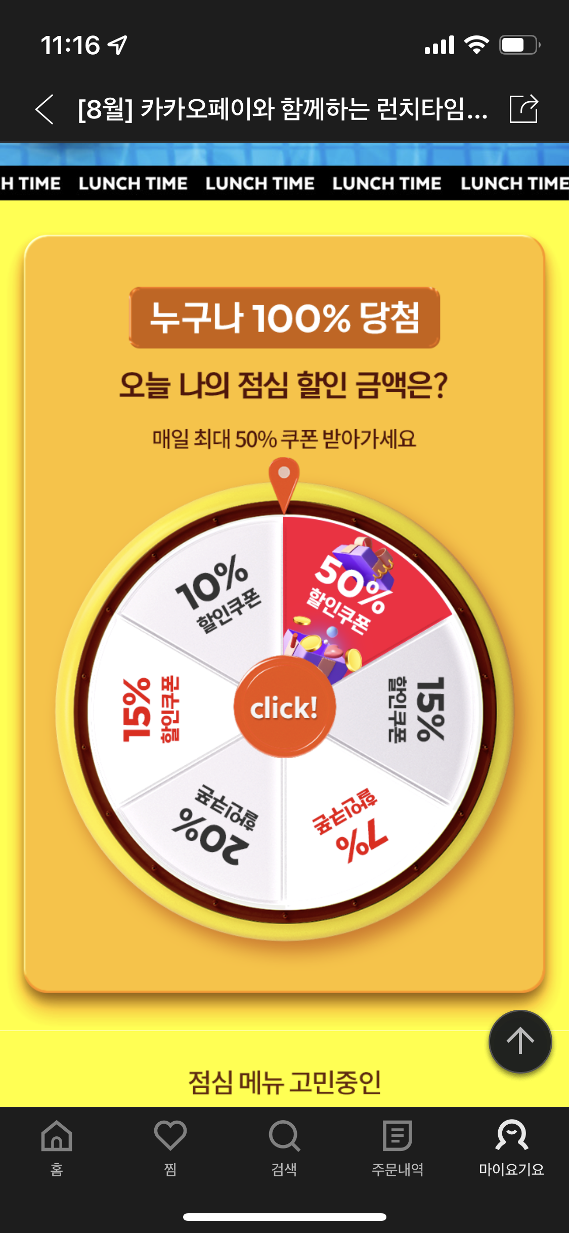 런치룰렛이 다시 부활 했다(?) 7월에도 잠깐 있다 사라져서 잘 모르겠다.