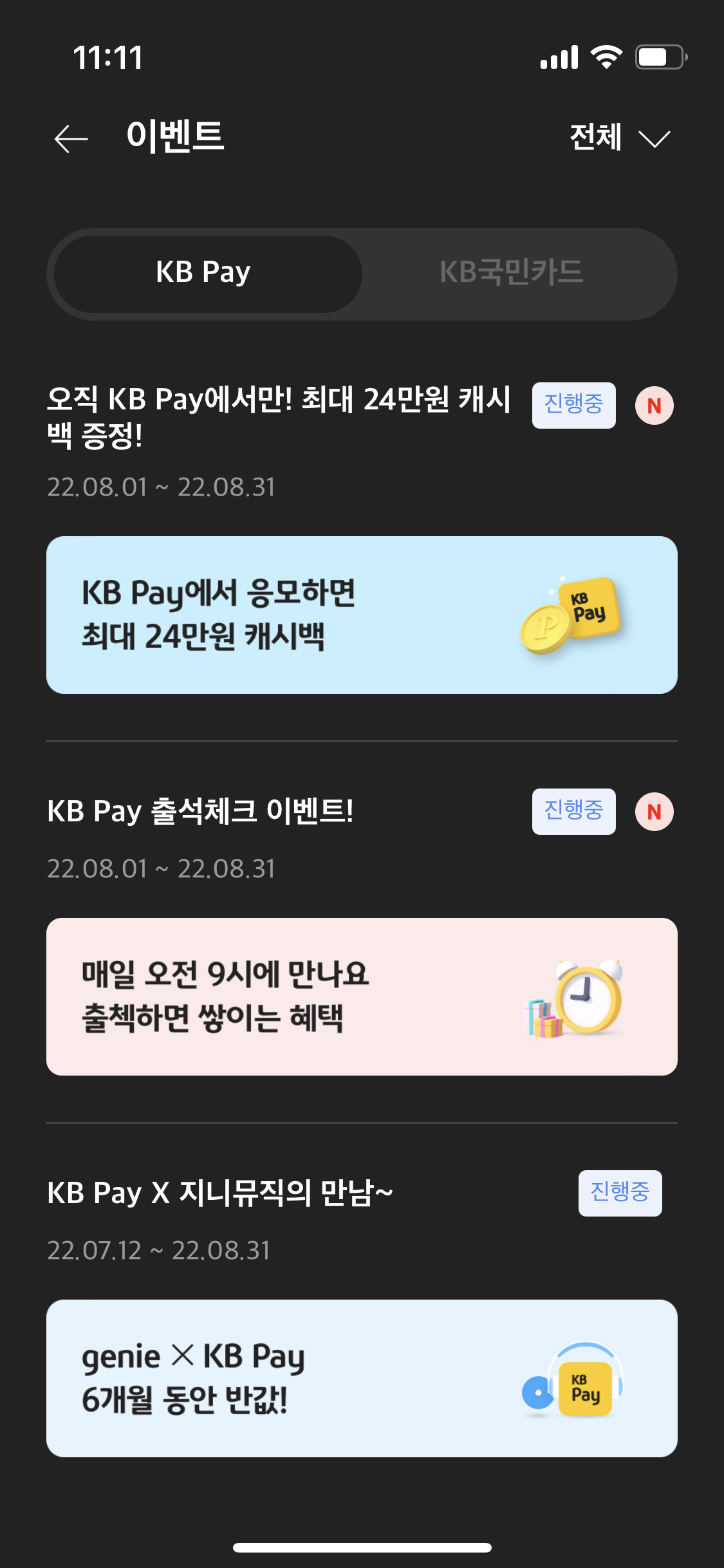 6월30일까지 진행 했던 KB Pay 출석체크 이벤트가 7월 4일부터 다시 진행한다. 방법은 기존과 동일하다. 자세한 내용은 아래 링크를 참조하자. https://algo79.tistory.com/969 KB Pay 출석체크 이벤트 KB Pay 출