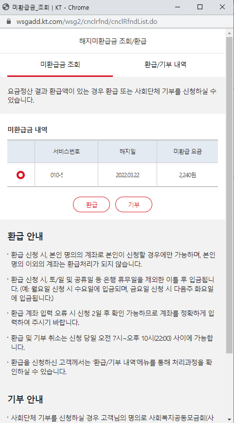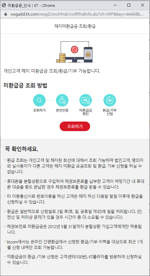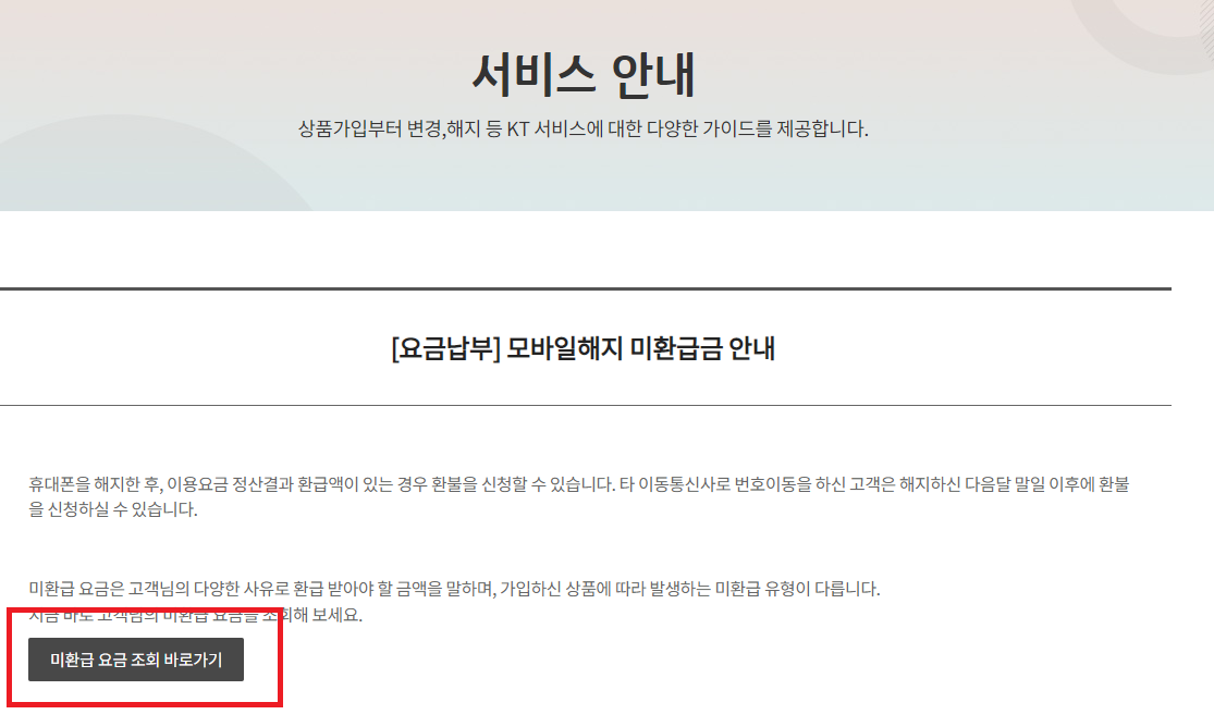 KT 에서 모바일해지 미환급금 안내 페이지가 있어서 들어가보니