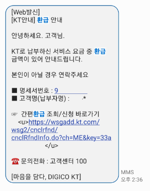 KT로 납부하신 서비스 요금 중 환급 금액이 있어 안내드립니다.