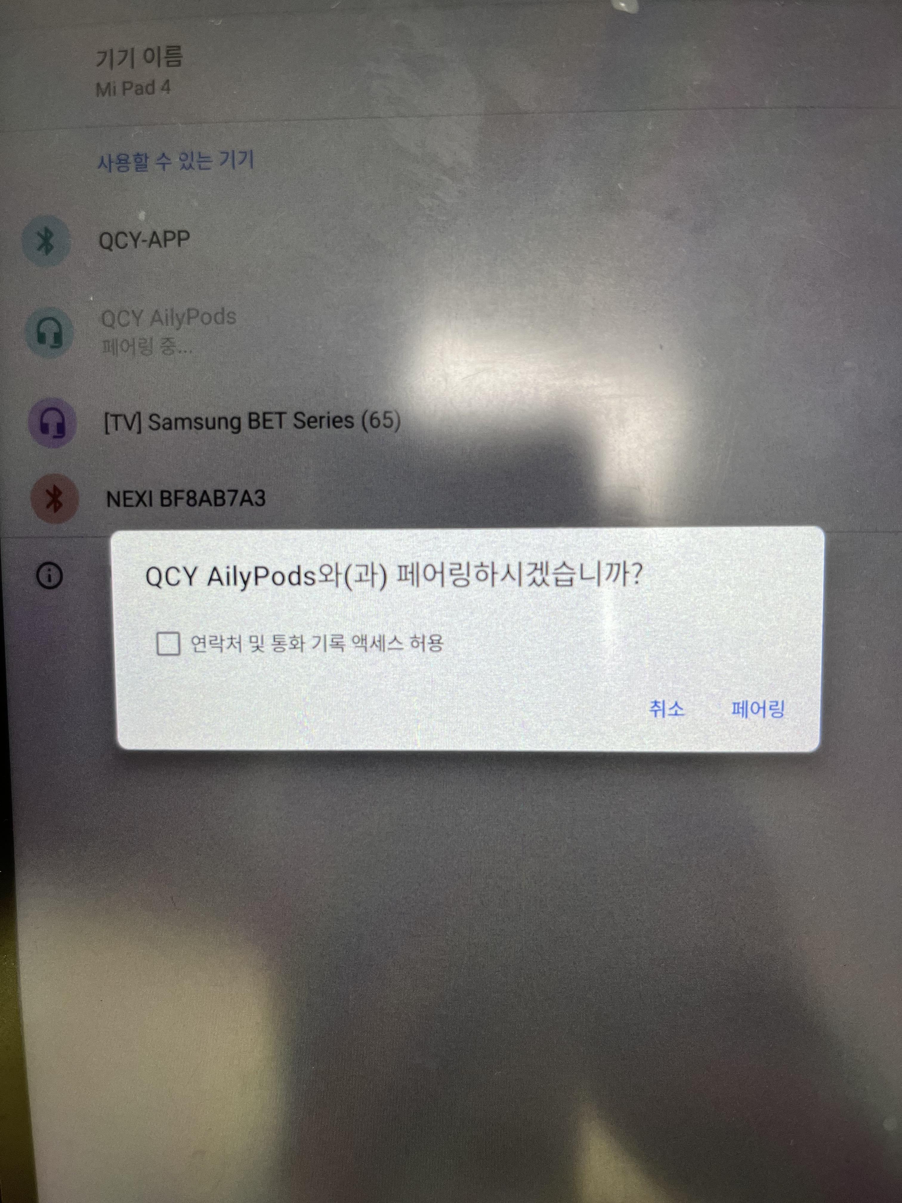 페어링 버튼이 따로 없다 그냥 블루투스 찾기를 누르면 QCY AilyPods 나오면 페어링 하면 된다.