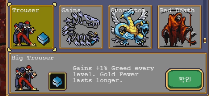 뱀파이어 서바이버즈(Vampire Survivors) 뱀파이어 서바이벌 0.10.0 히든 케릭터 Trouser 해금 방법