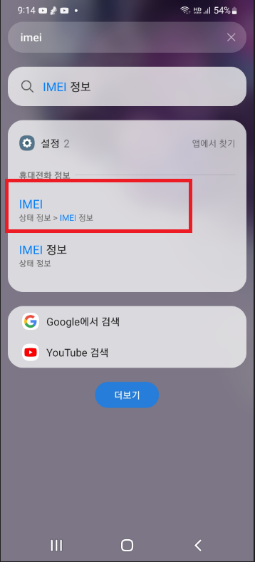휴대폰 검색에 IMEI 를 입력하면 정보가 나온다