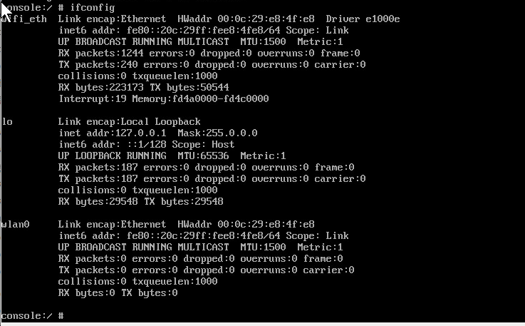 리눅스 콘솔 창이 뜬다. 여기서 IP를 수동으로 잡아주면 된다.