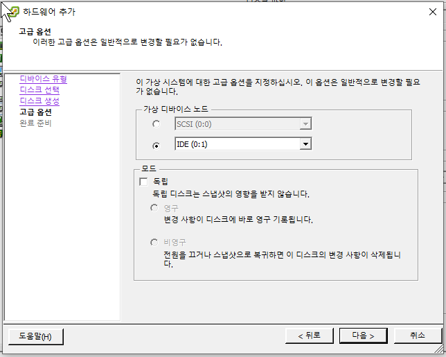 SCSI 방식이여서 인식이 안되는것 이다.(가상화가 아닌 일반 PC는 정상 작동 된다.)