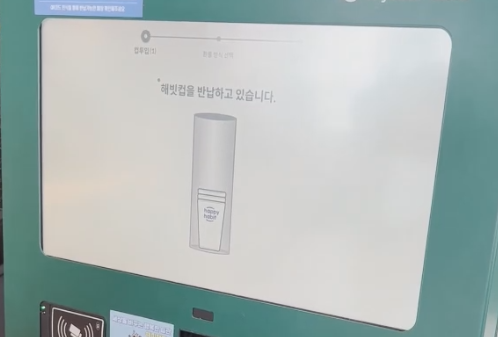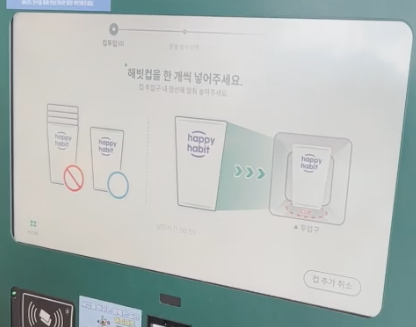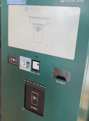 뚜껑, 빨대, 컵 홀더 제거 -> 스티커 제거 -> 잔여 음료 제거 하고 기계에 넣으면 된다.