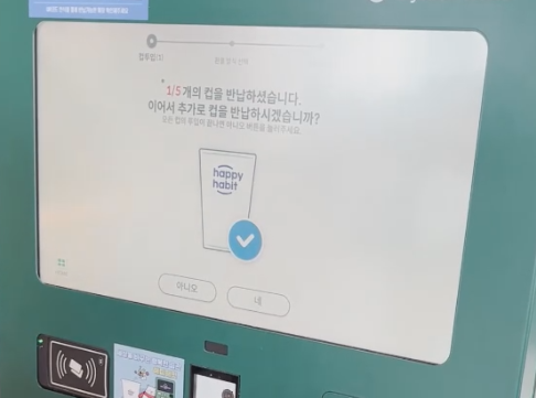 컵을 추가 할건지 물어본다 최대 5개 까지 반납이 가능하다.