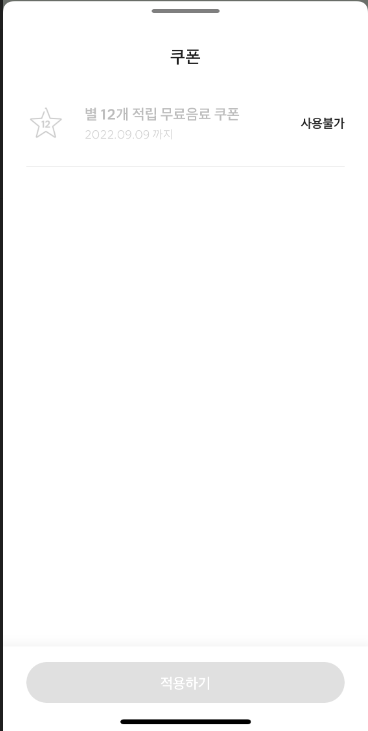 아참 이렇게 특정 메뉴는 별무료음료 쿠폰으로 못먹는다.