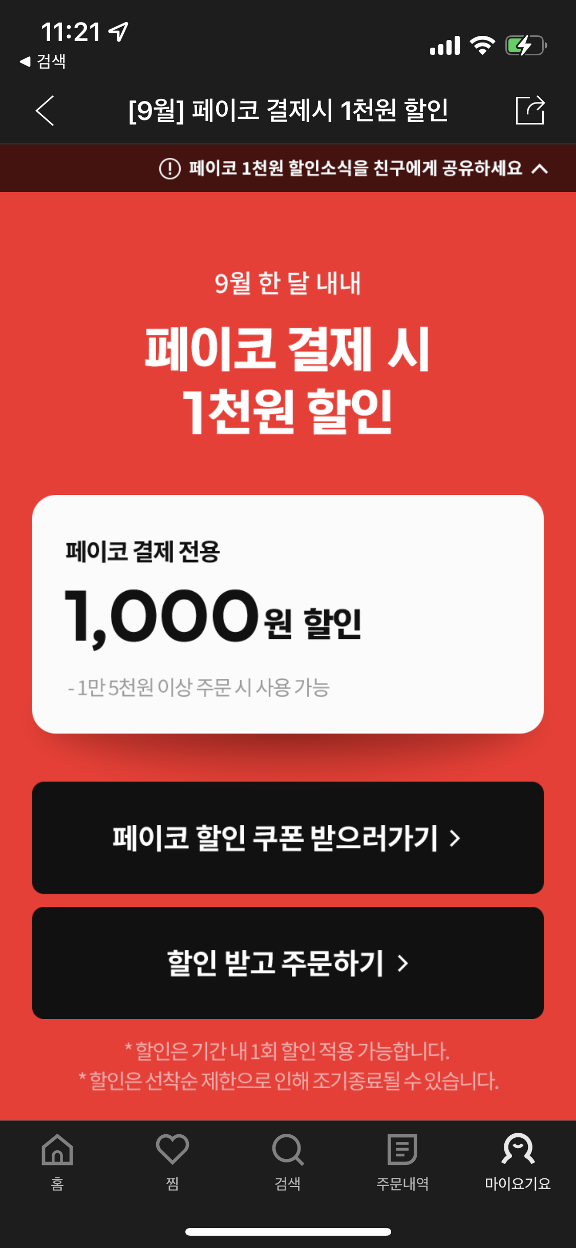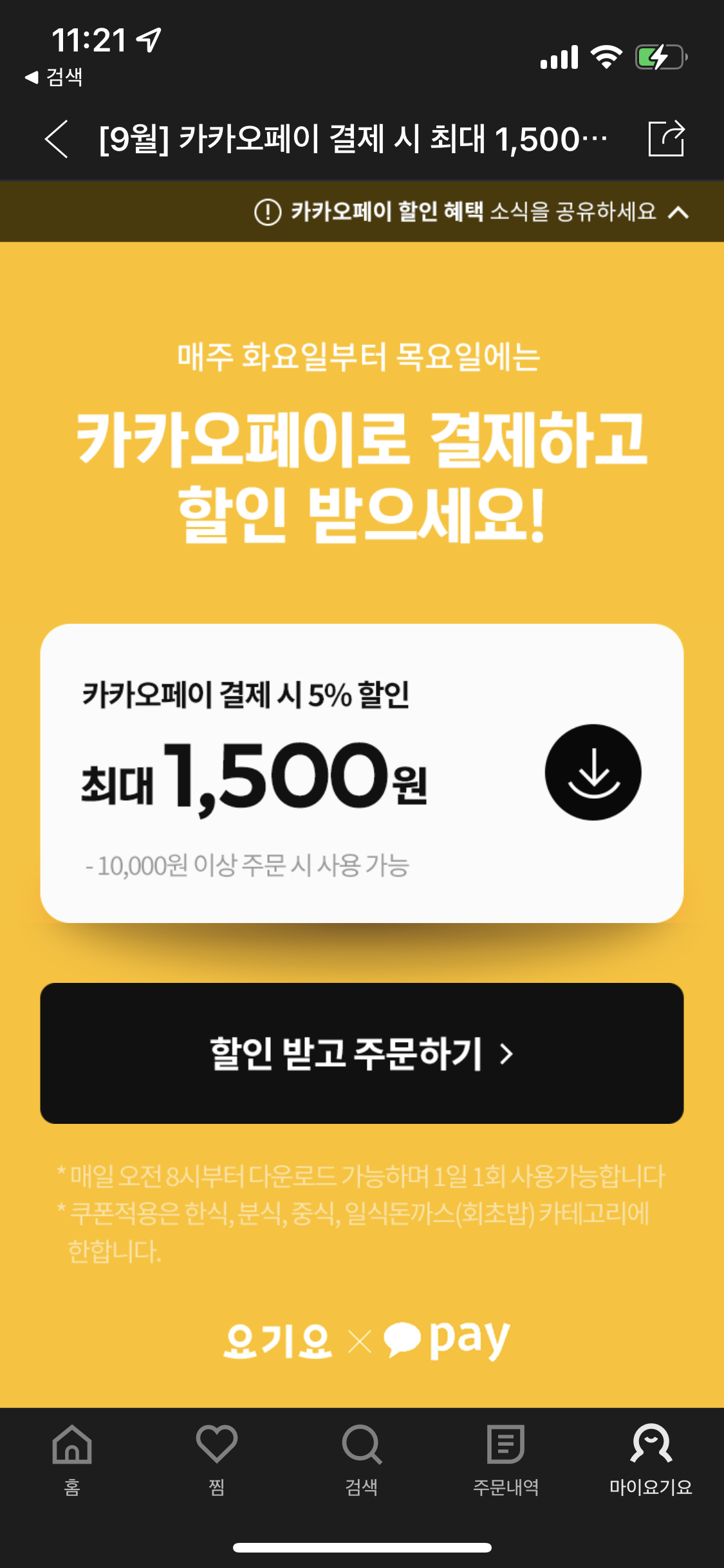 네이버페이 x 요기요 1천원 할인쿠폰(1만원이상)