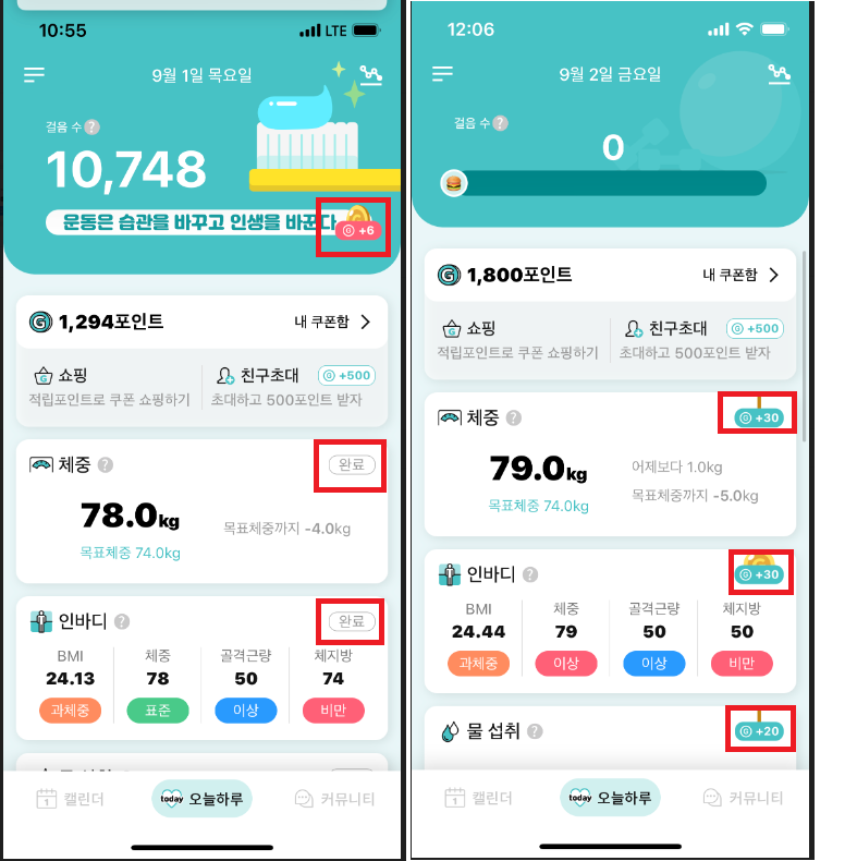 캐시워크 처럼 만보를 걸으면 100포인트 주고 추가로 인바디 정보를 입력하면 추가로 적립을을 더 준다.