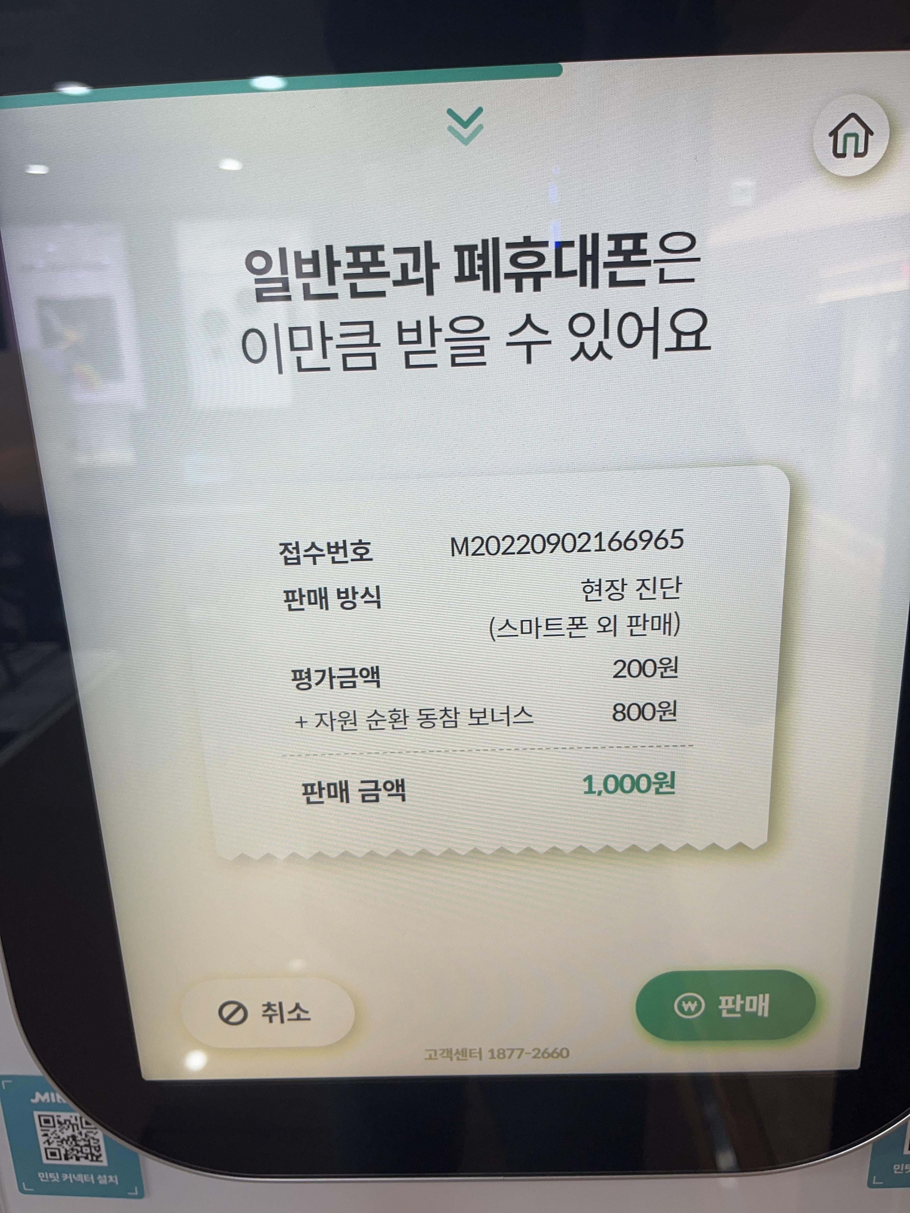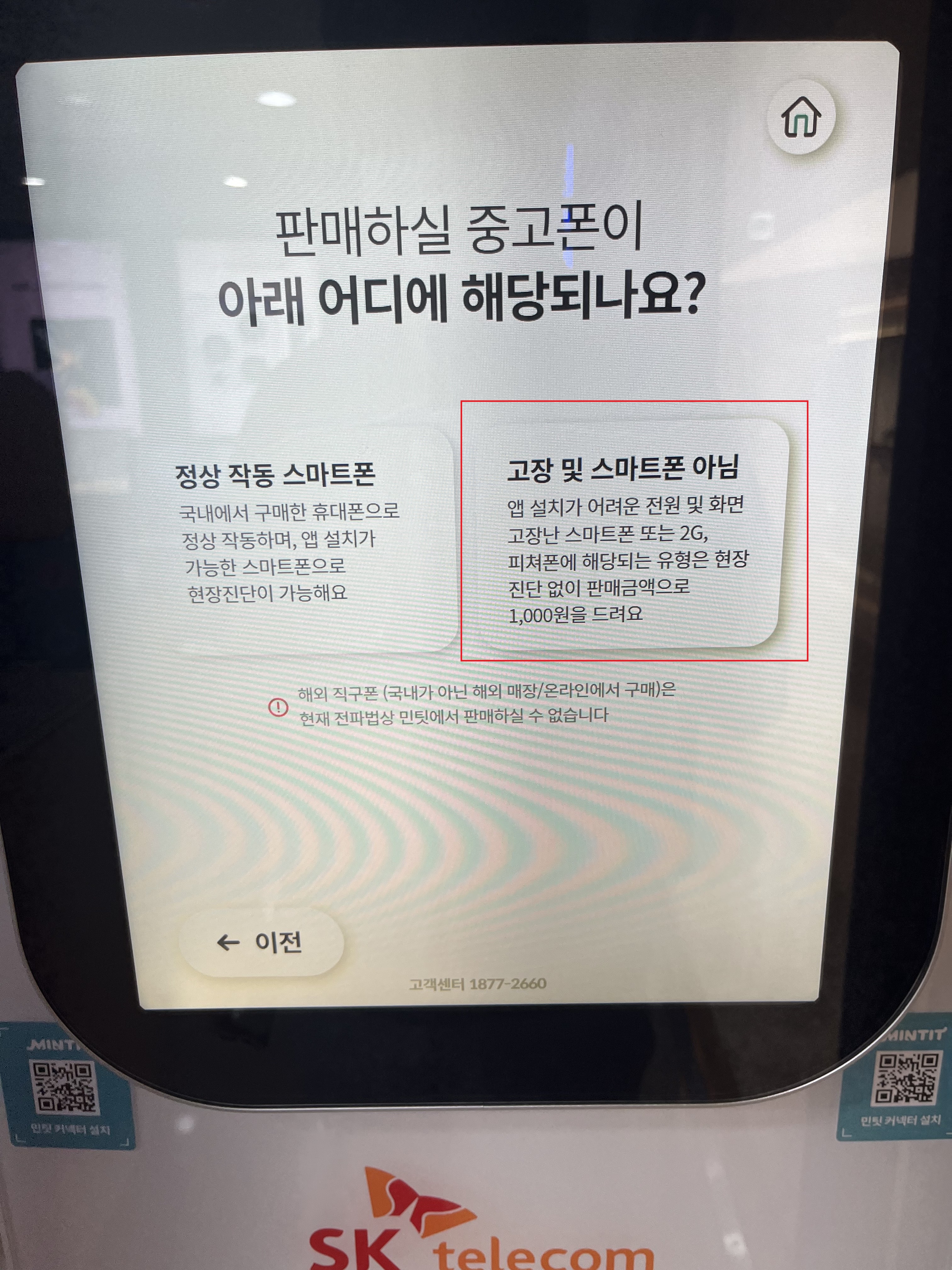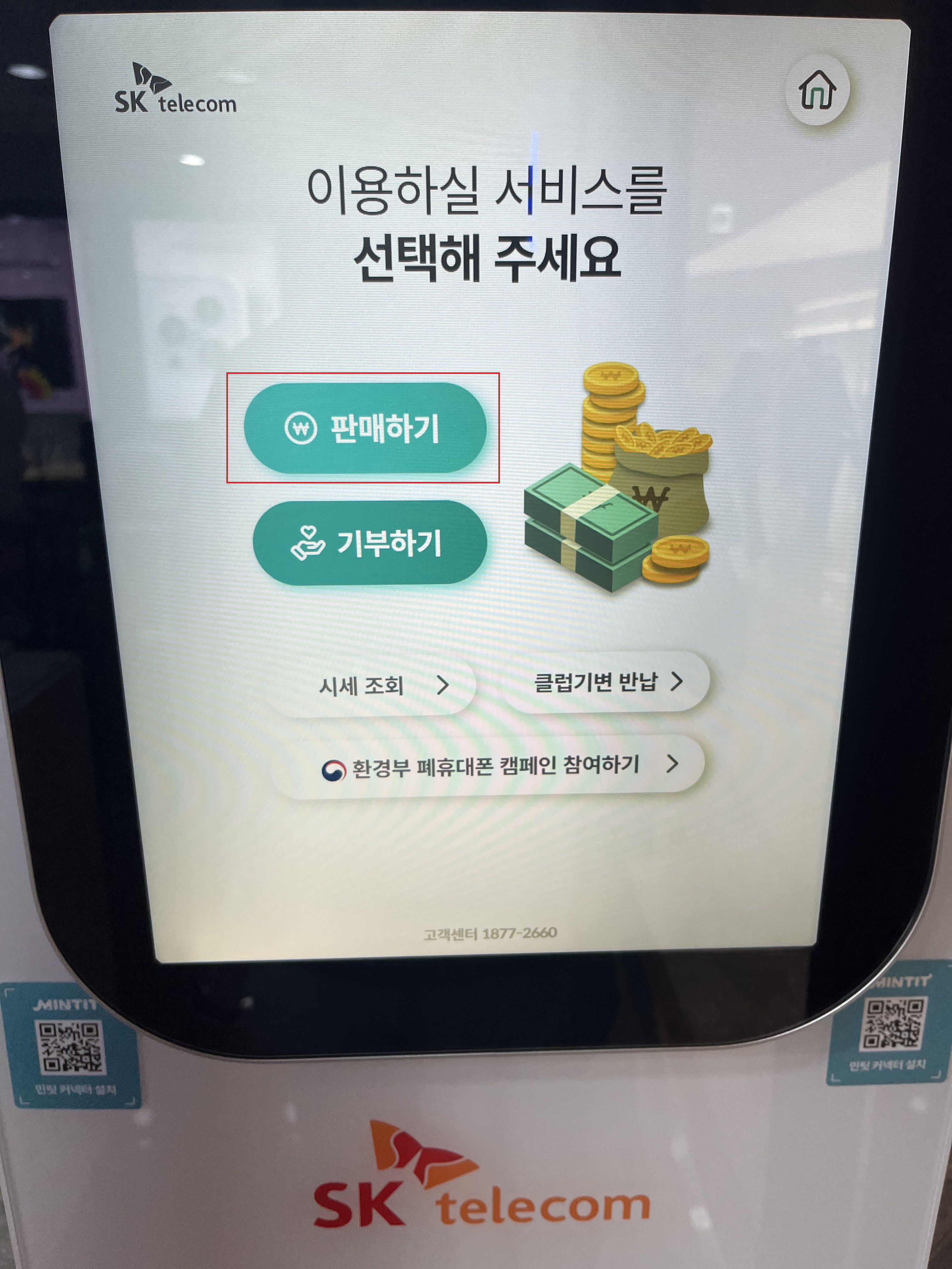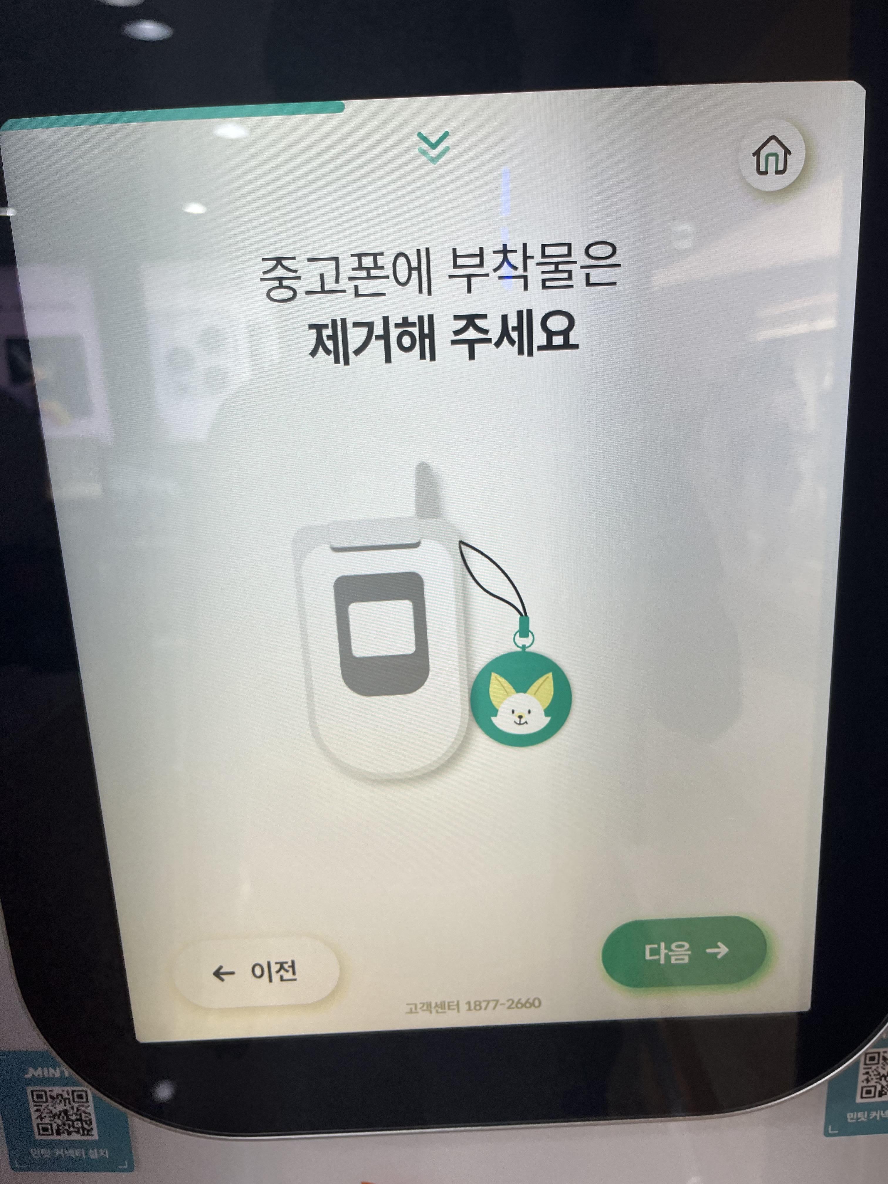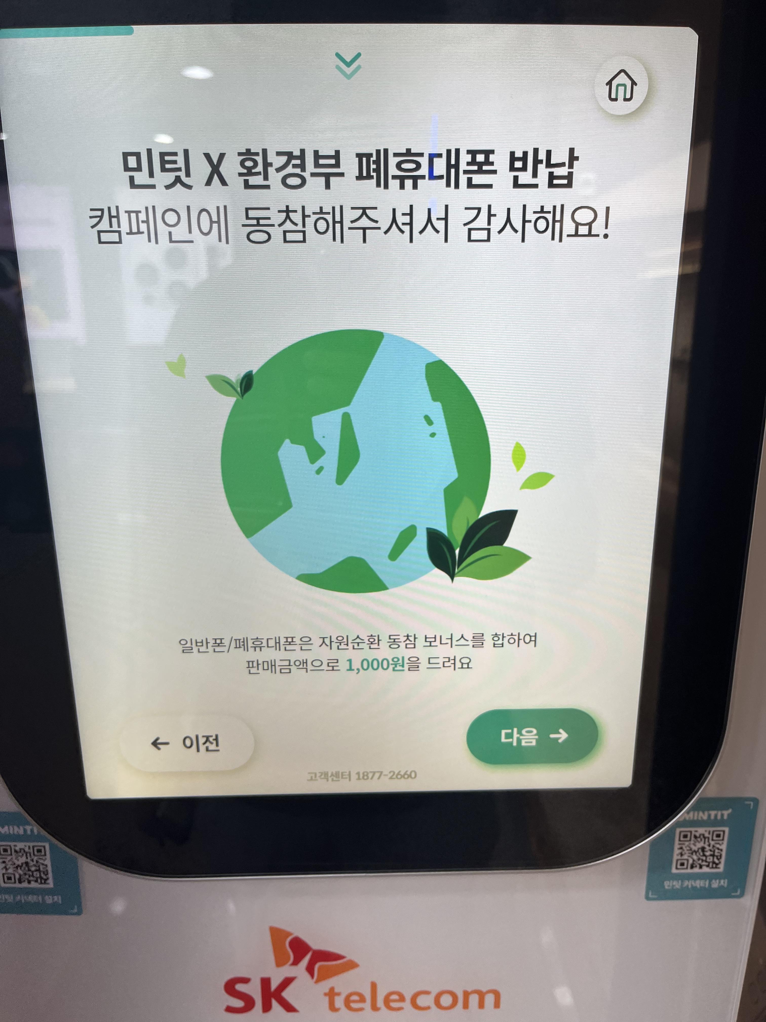 옛날 구형 피쳐폰들이다. 2개를 들고 근처 민팃 기계로 가자. 값어치가 없는 기기를 넣어야 한다 작동 안되어도 ㅇㅋ