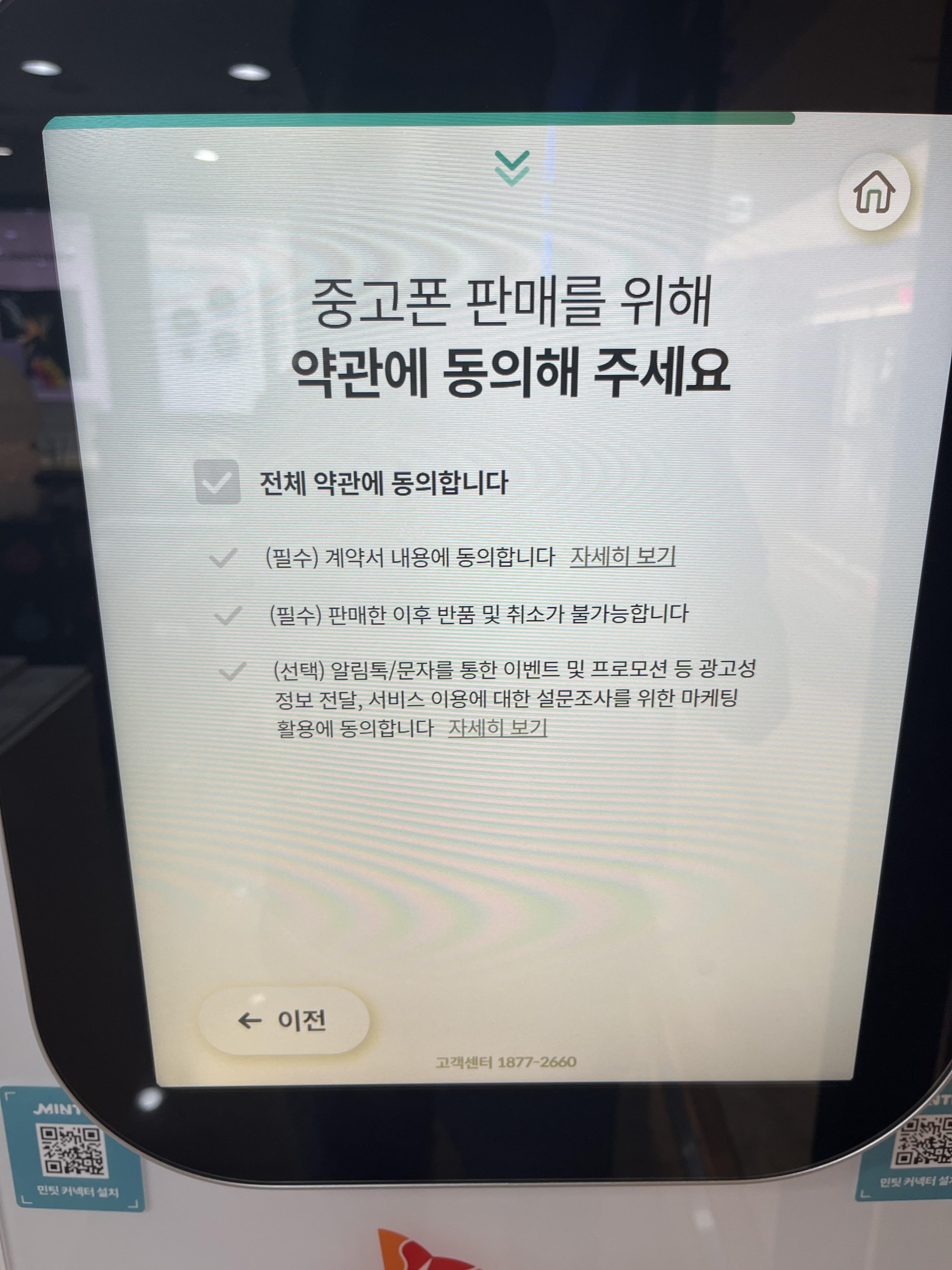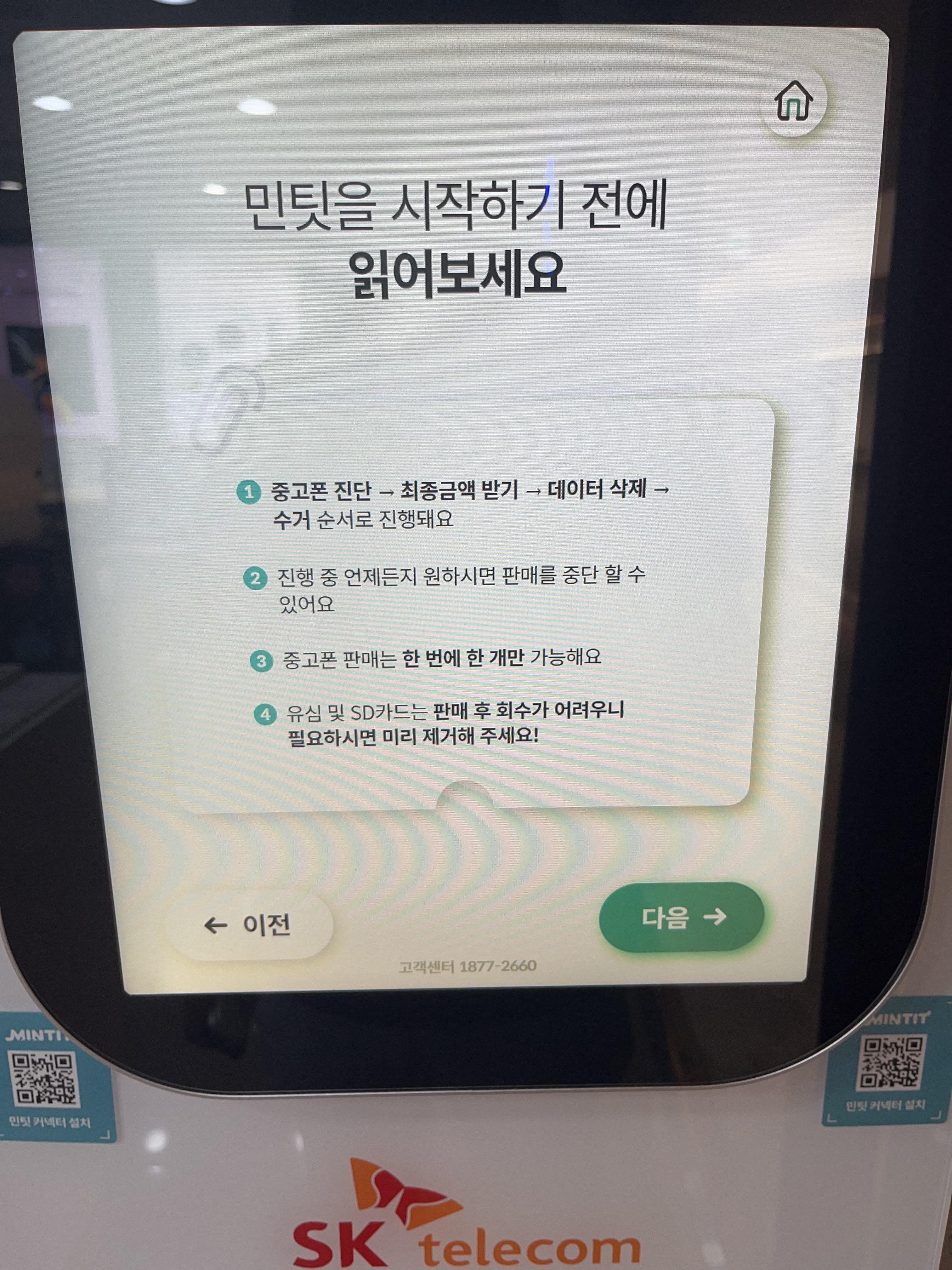 기계에 휴대폰을 넣기 전에 내 휴대폰에 민팃을 설치 하고