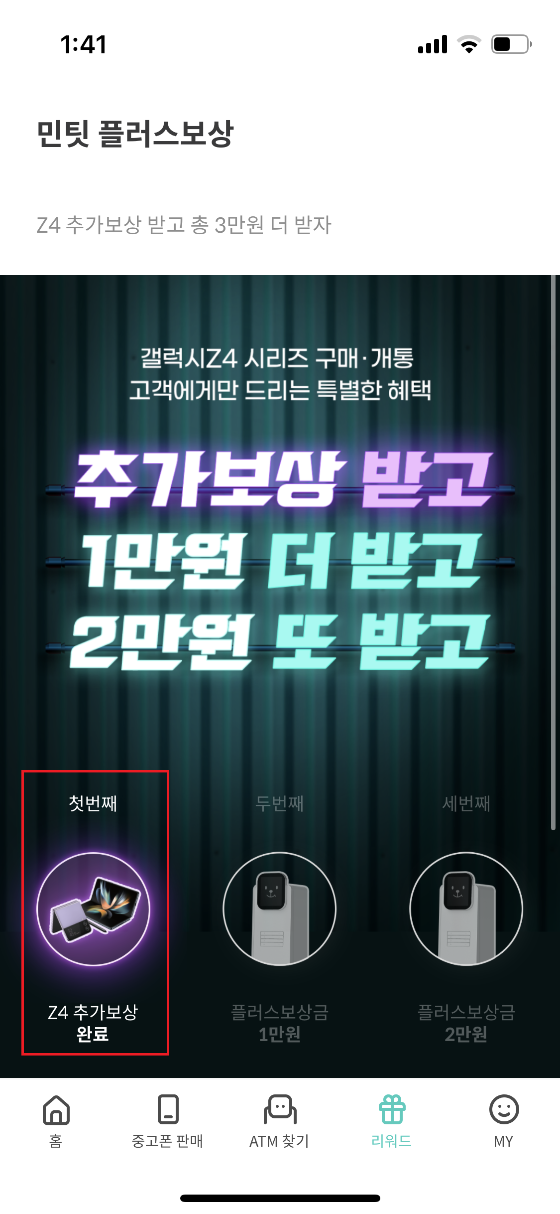 첫번째 Z4 추가 보상 완료 상태여야지만 플러스 보상을 신청 할 수 있다.
