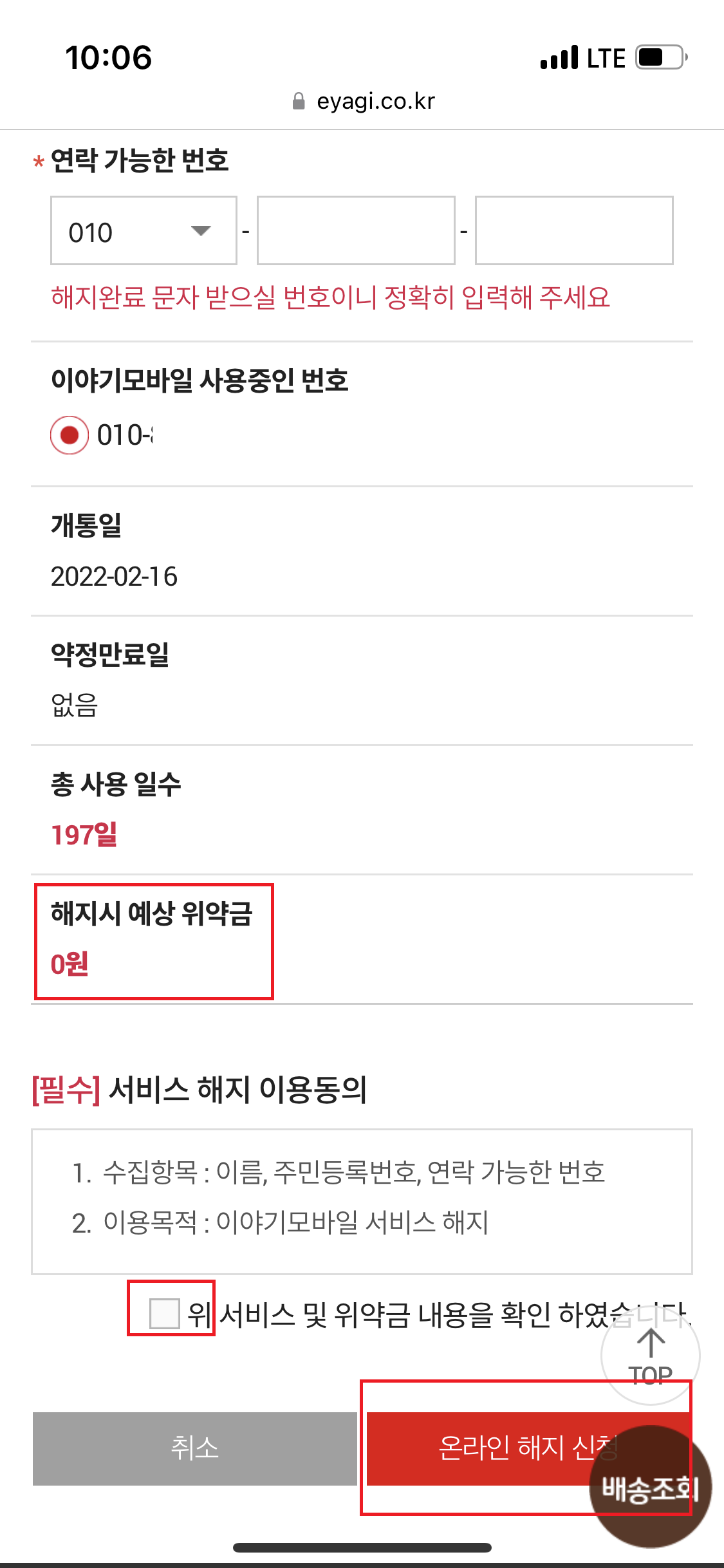 해지 위약금 여부 확인 후 온라인 해지 신청 누르면 된다.