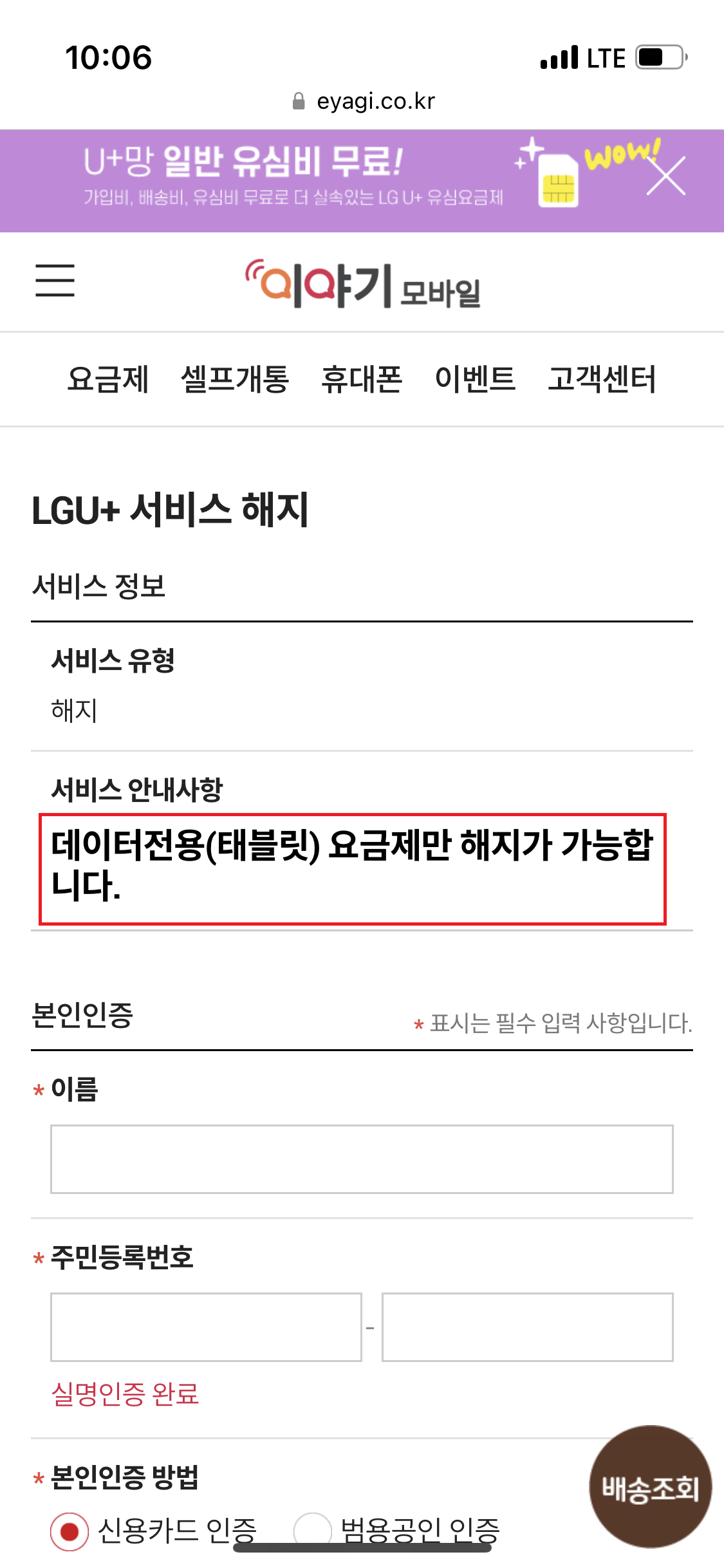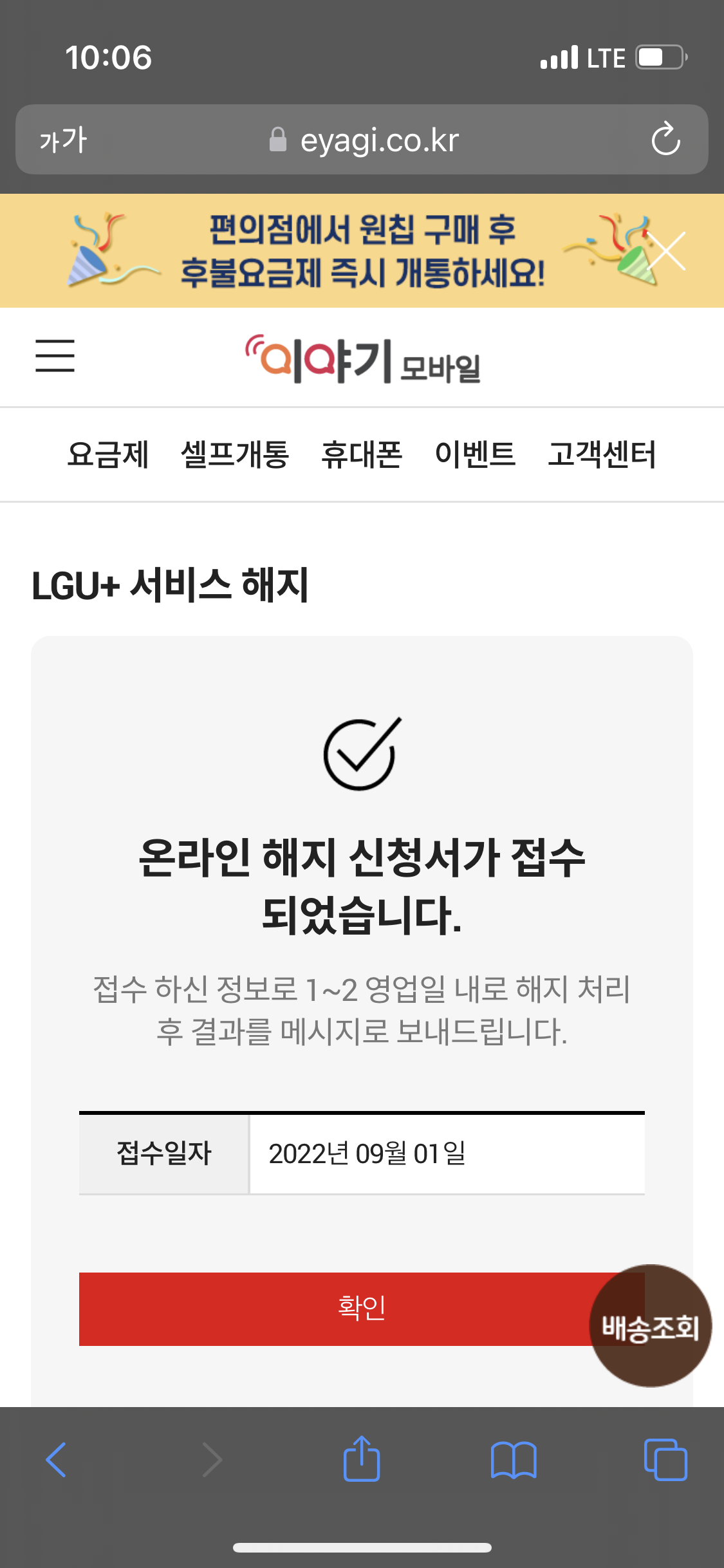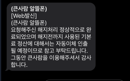난 오전에 해지 요청 오후에 해지 완료 문자가 왔다.