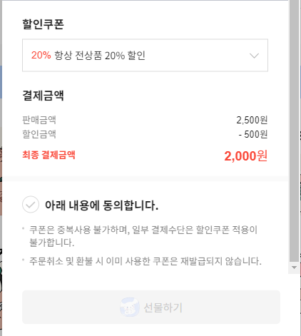 기본 20프로 할인인 2,000원으로 구매가 가능하다.