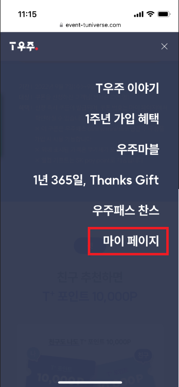 티맵에 들어가서 (T월드 계정연동) 전체 - 플러스 눌러보면