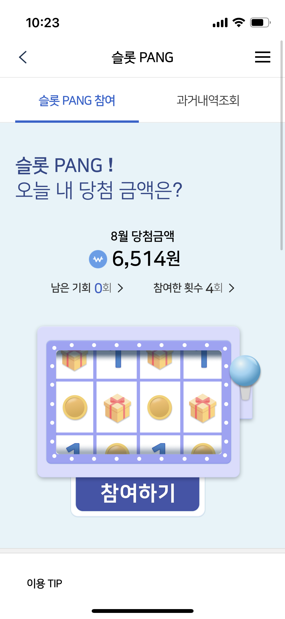 10만원 이상 결제시 1회씩 기회를 주는데 난 4개가 있었다. 참여하기 눌러보면 랜덤하게 돈이 나오는데