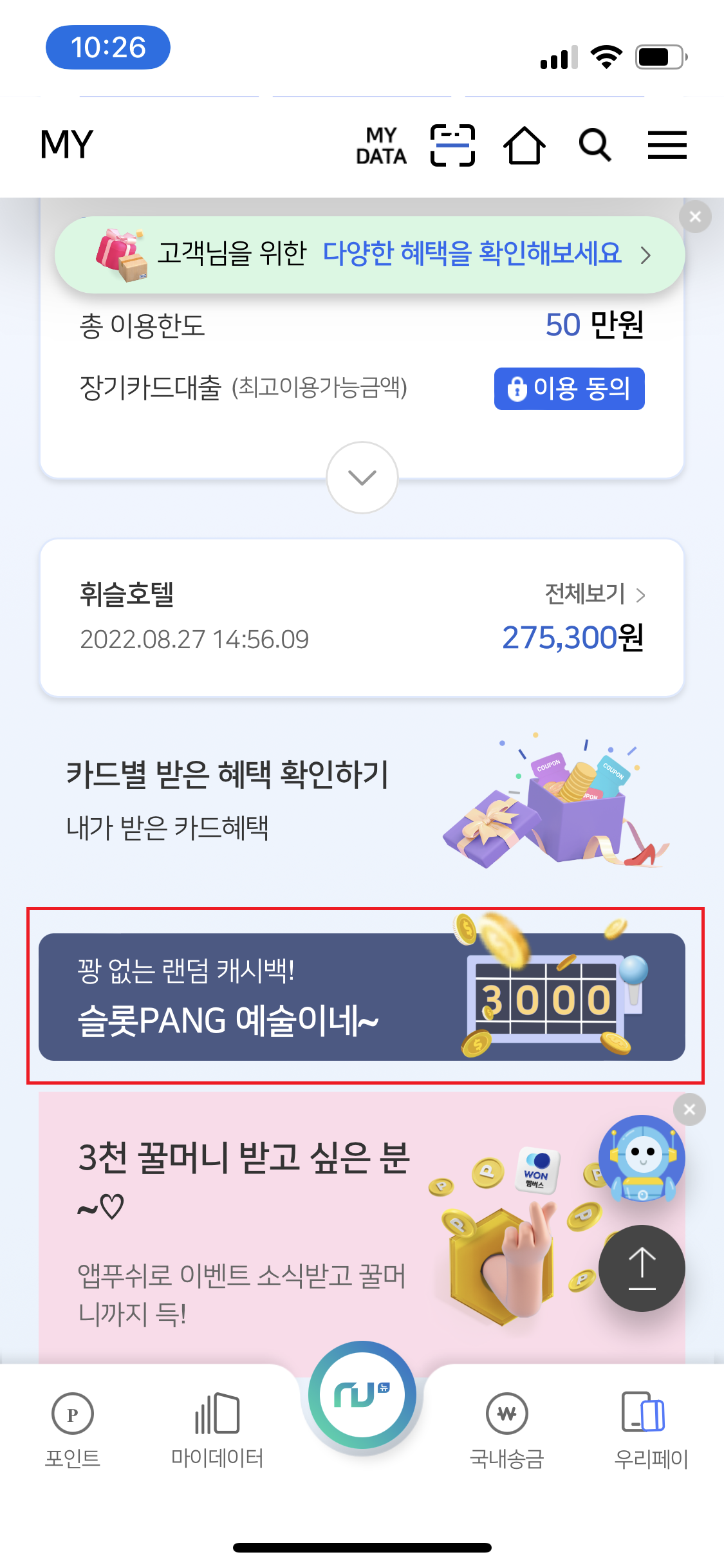 My 페이지에 아래로 내리다 보면 슬롯 PANG 예술이네 이벤트가 있다 이걸 눌러보자.