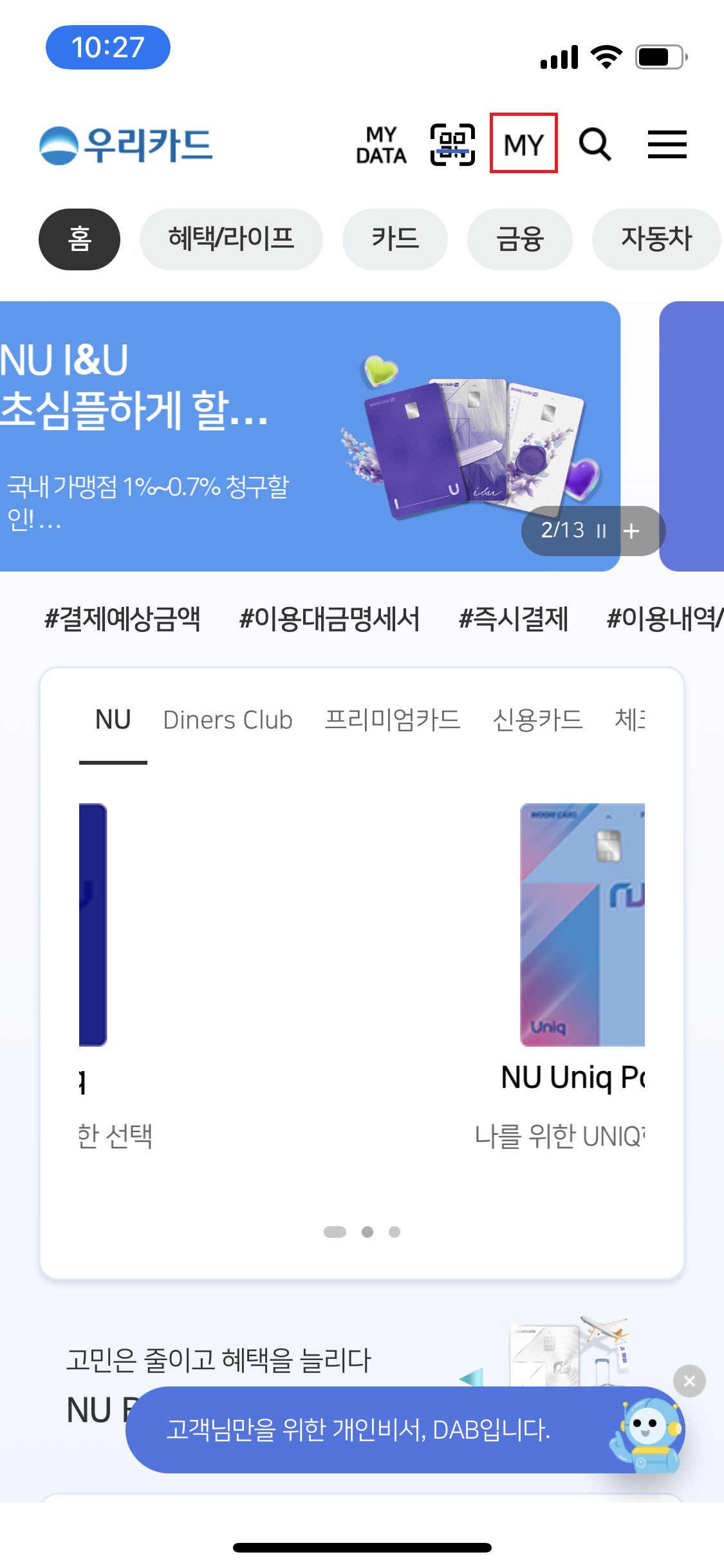 우선 우리카드 어플 설치 하고 로그인을 하자