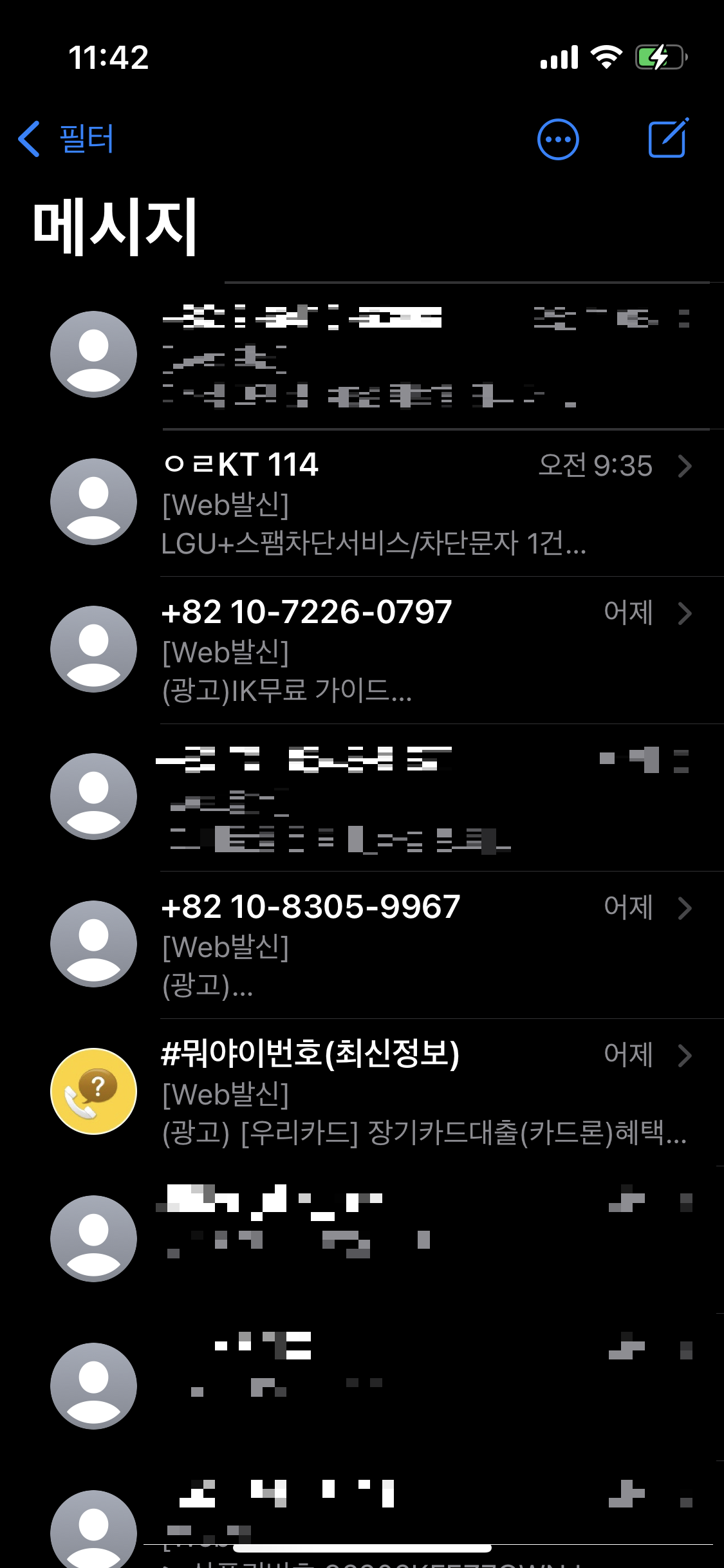 그래서 그런지 스팸 문자가 너무 많이 온다.