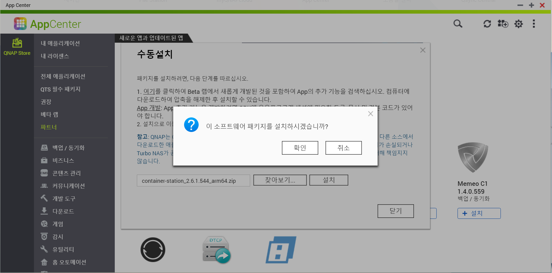 자신이 가지고 있는 모델 버전 선택 하고 검색 란에 container station 검색 해보고 나오면 설치가 가능한 버전이다.