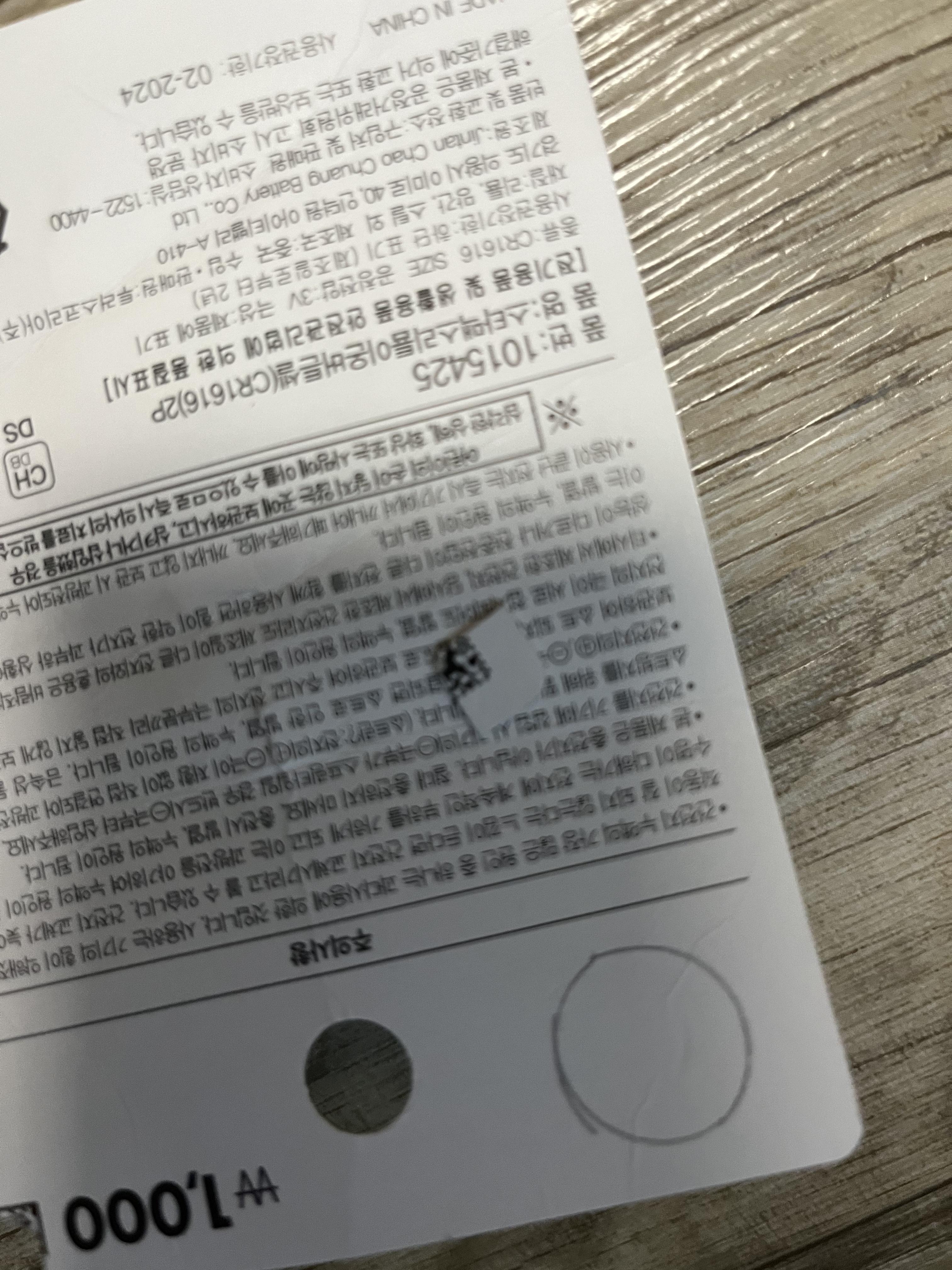다이소에서 산 CR1616 포장지를 잘라서 넣으면 된다. 1개만 넣으면 공간이 생기기 때문에 종이로 공간을 채우면 된다.