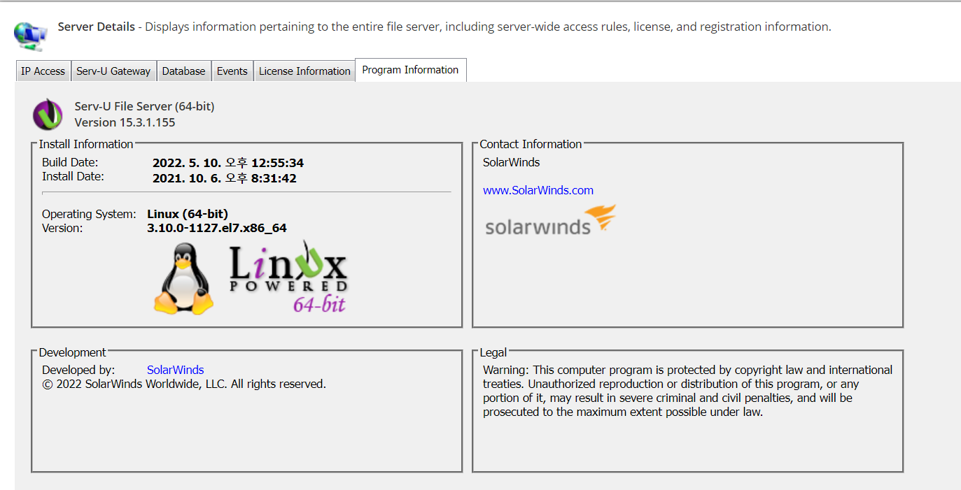 # ./SolarWinds-SERVU-FTP-Server-v15.3.1.155-Linux-64bit