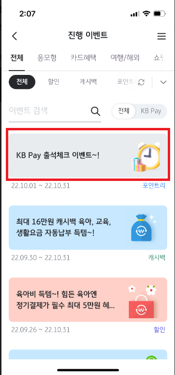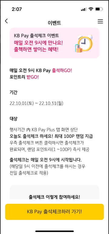 | 11월 KB Pay 출석체크 이벤트 (0) | 2022.11.03 |