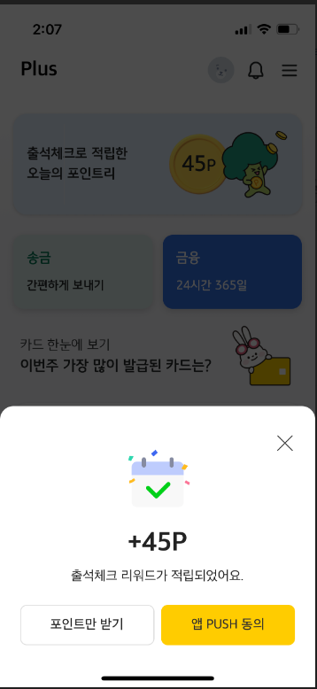 기존에는 그냥 출석 체크가 됐는데 지금은 출석체크를 눌러야 한다.