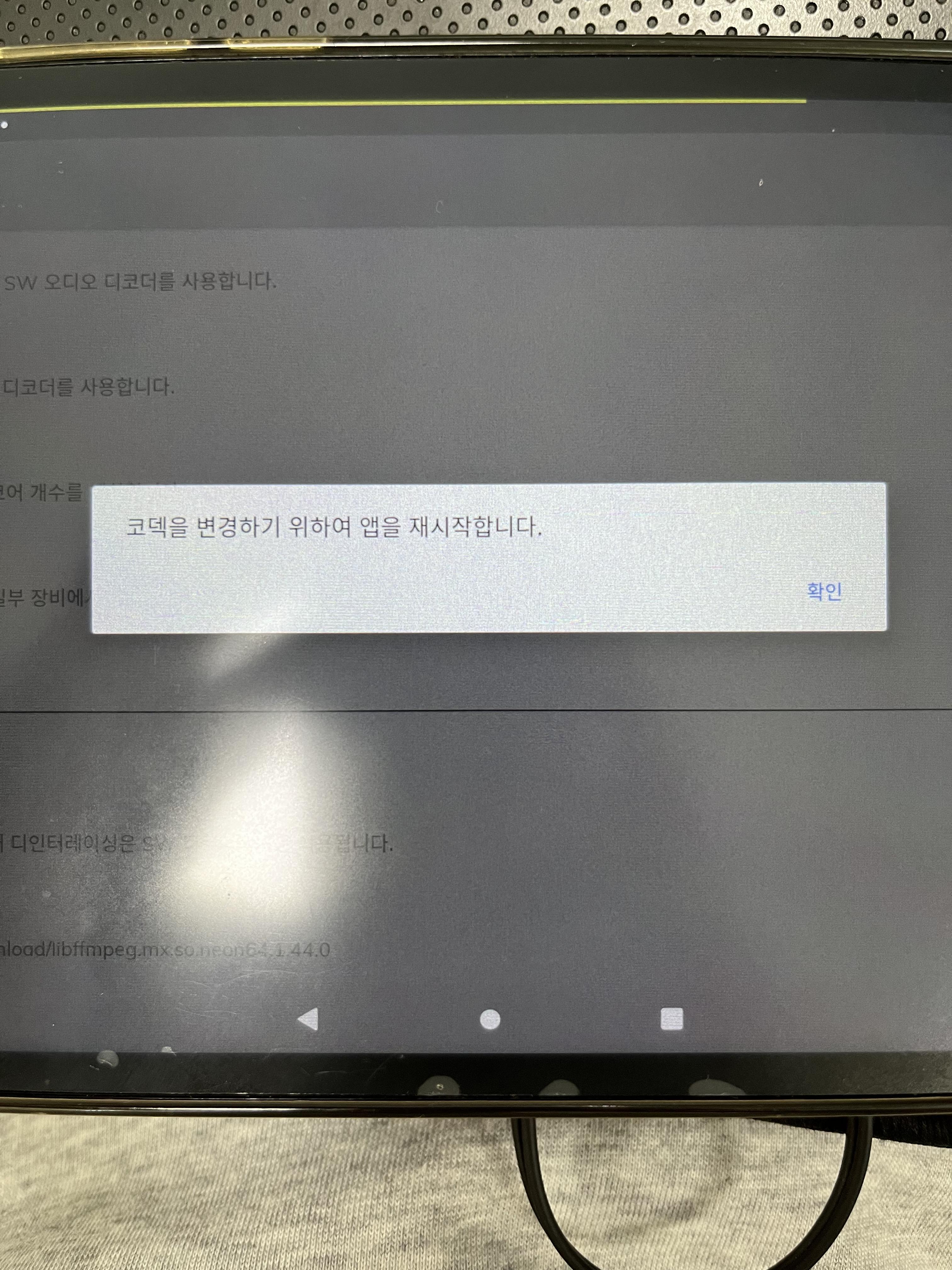 코덱을 변경하기 위하여 앱을 재시작합니다. 라고 뜨면 정상적으로 적용 된것이다.