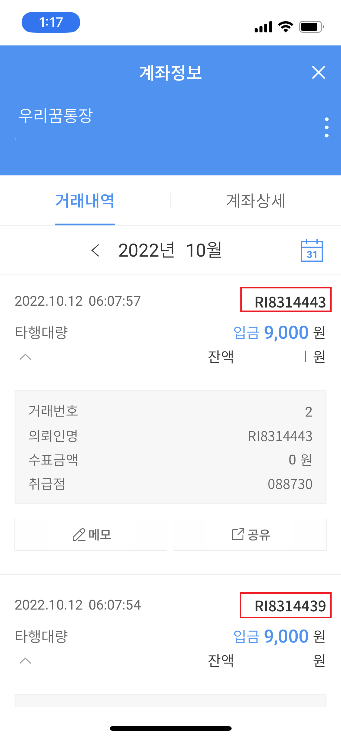 어느날 갑자기 위와 같이 9천원씩 2번 새벽에 입금이 되었다.