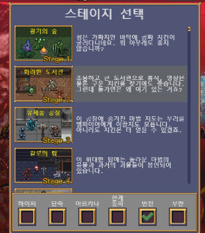 뱀파이어 서바이버즈(Vampire Survivors) 뱀파이어 서바이벌 1.0 패치 히든케릭 버키(무작위) 해금방법