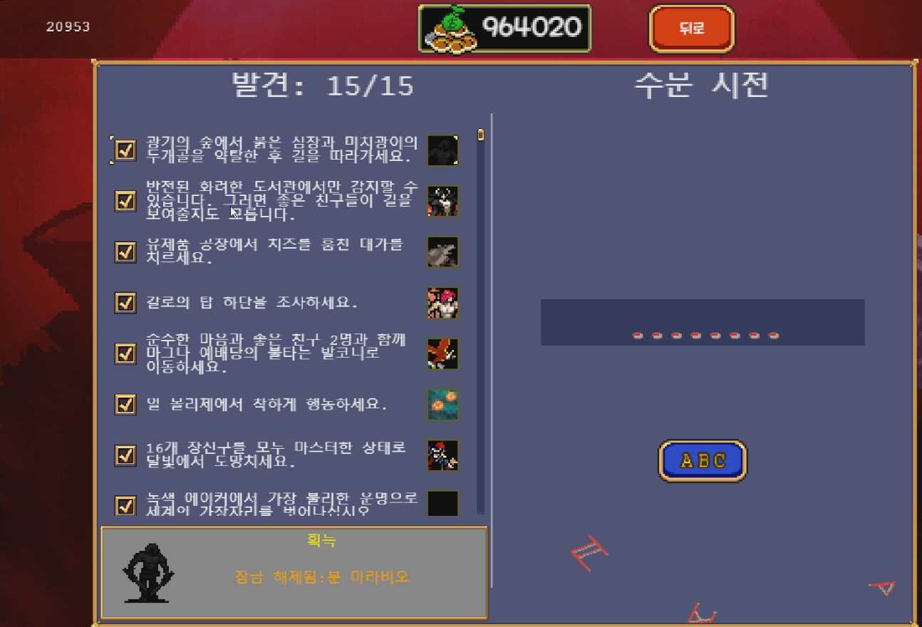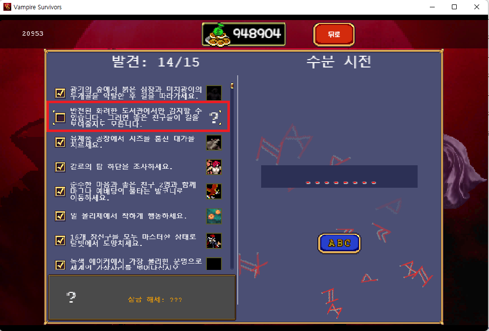 뱀파이어 서바이버즈(Vampire Survivors) 뱀파이어 서바이벌 1.0 패치 히든케릭 아바타 해금방법