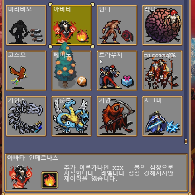 보스를 잡으면 히든케릭인 아바타가 나온다.