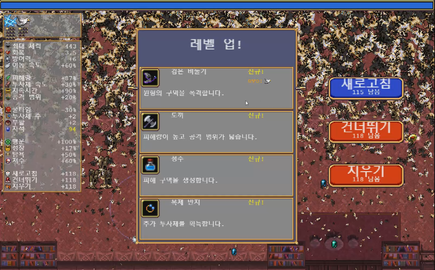 | 뱀파이어 서바이버즈(Vampire Survivors) 뱀파이어 서바이벌 1.1 패치로 변경된점 (0) | 2022.11.28 |