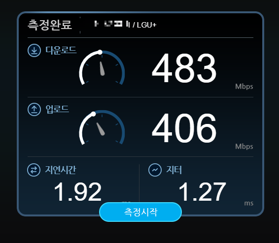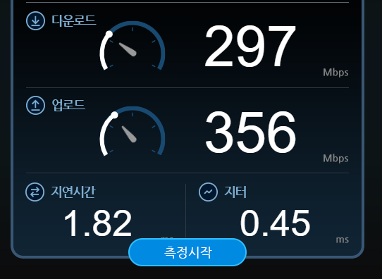 속도는 준수하다.. 옛날에는 비대칭이여서 다운속도는 잘 나오지만 업속도가 엄청 안나왔던 기억있는데 아파트여서 인지 대칭이라 업다운 속도가 양호 하다.