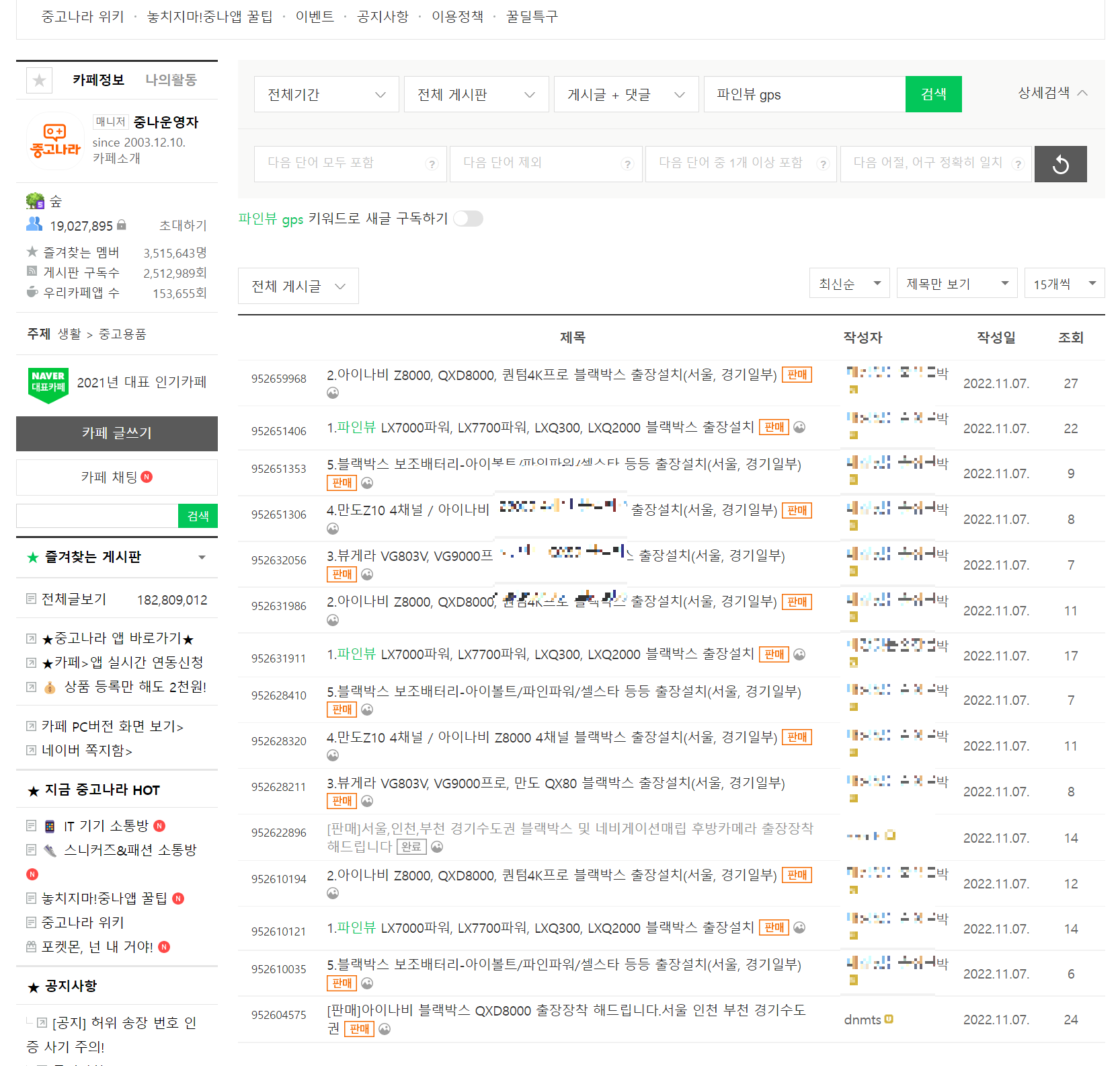 파인뷰 GPS 로 검색해보면 거의 대부분 업자 광고들이다. 개인판매자 글을 확인 하기 힘들다