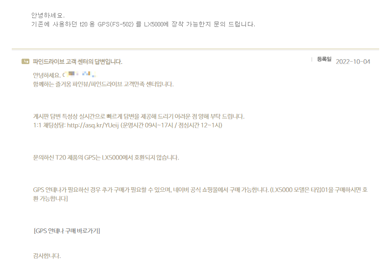파인뷰 T20R GPS 모듈을 LX5000 Power에 연결을 하면 정상작동 될까?
