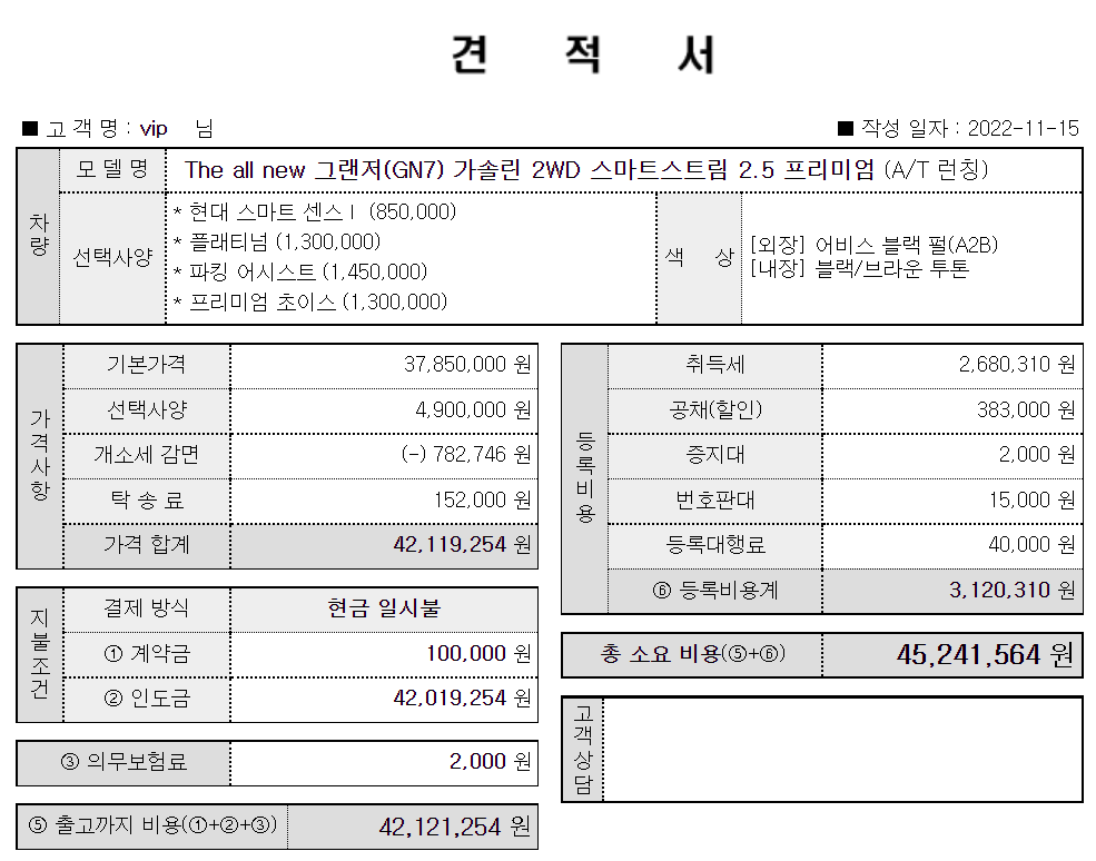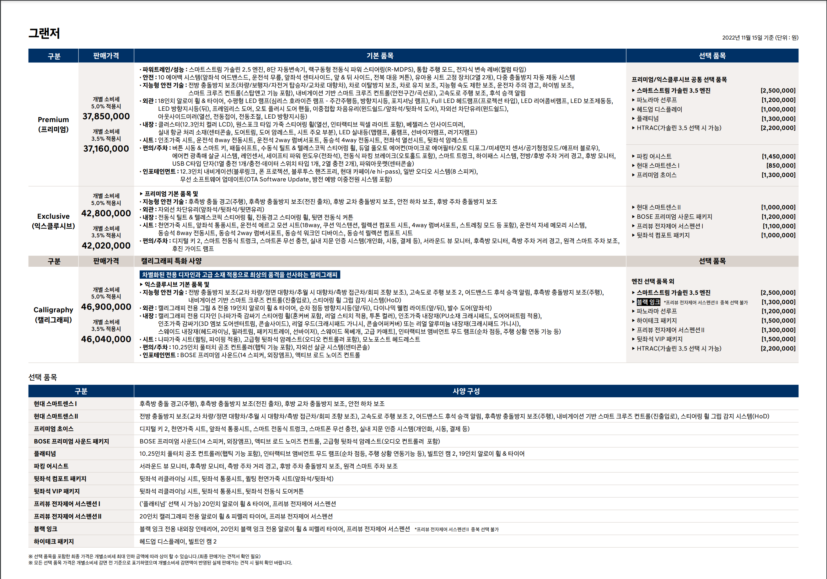 그랜저 풀체인지 2023 가격이 공개 되었다.