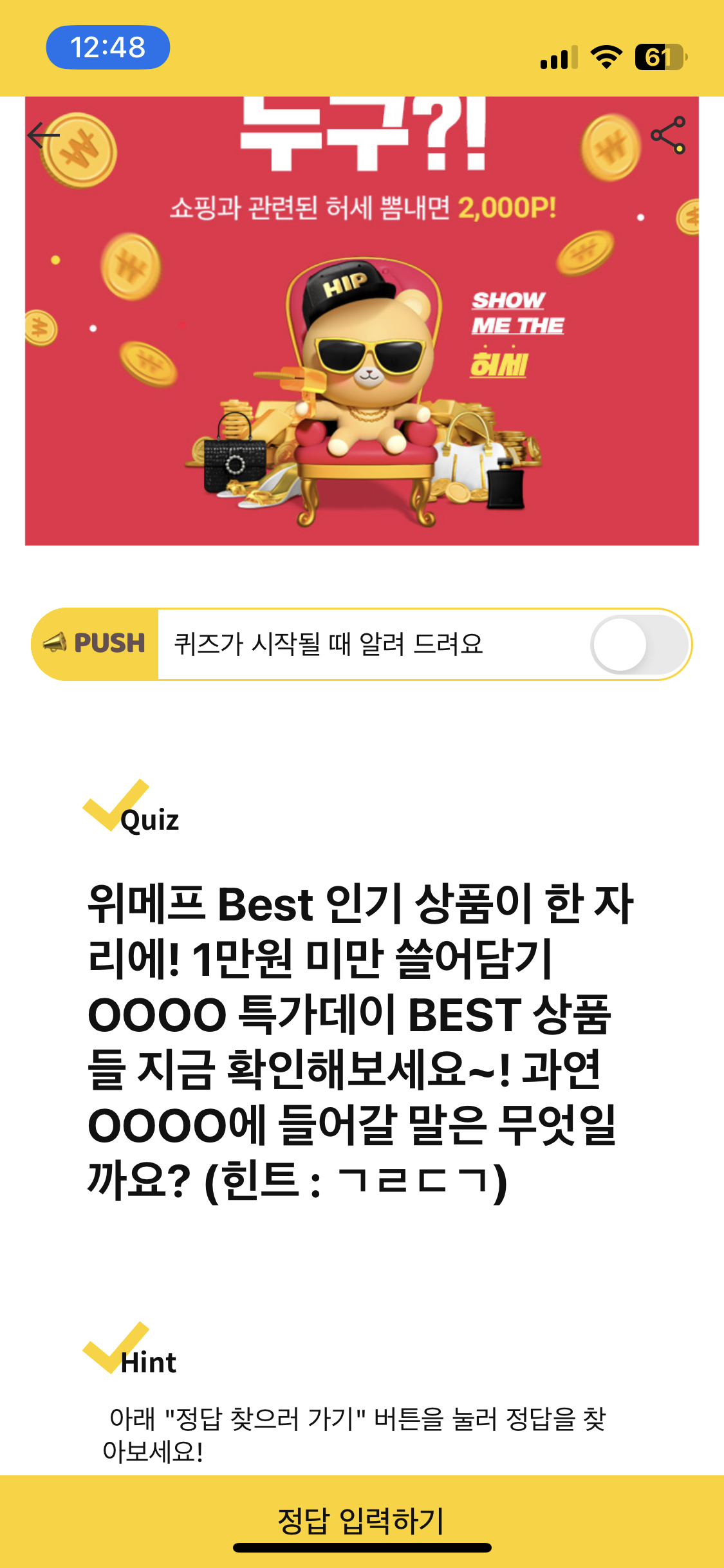 이렇게 오후 5~6시 정도에 들어가서 모든 퀴즈를 풀면 된다.