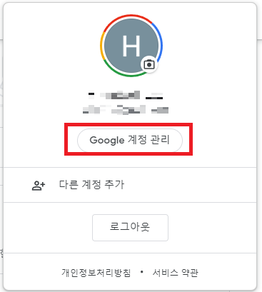 위와 같이 뜬다 Google 계정 관리 눌러보자.