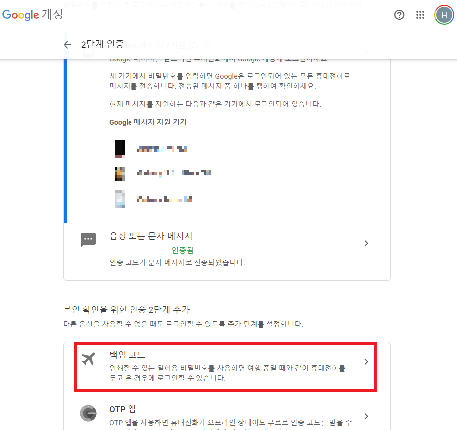 구글 보안 코드 안보일때 하는 방법은 위 링크 참조