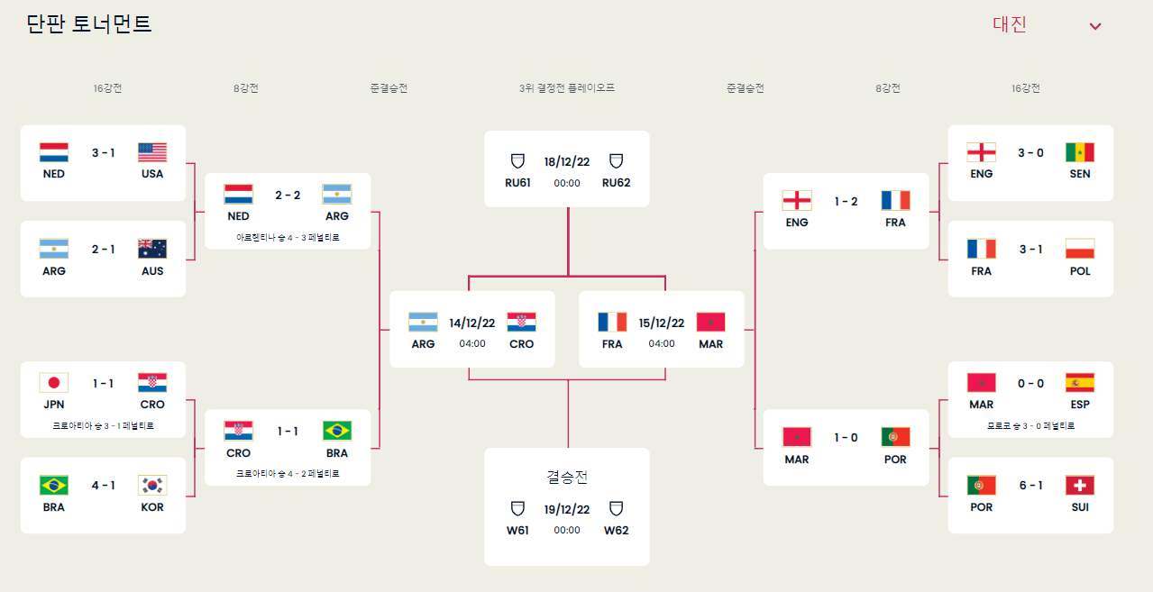 2022 카타르 월드컵 4강! 대진표!가 나왔다!