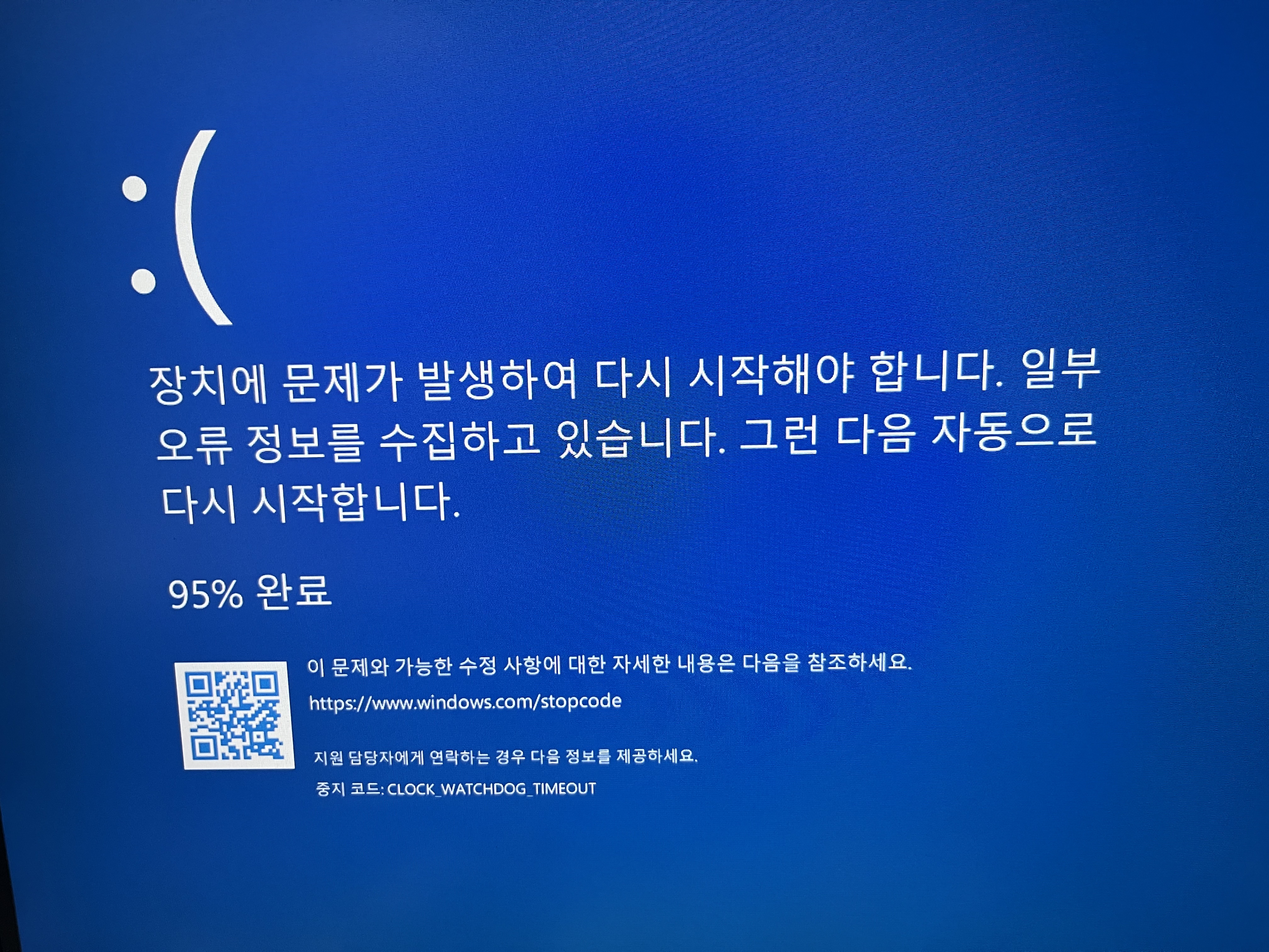 위와 같이 블루스크린 뜨면서 재부팅이 된다.
