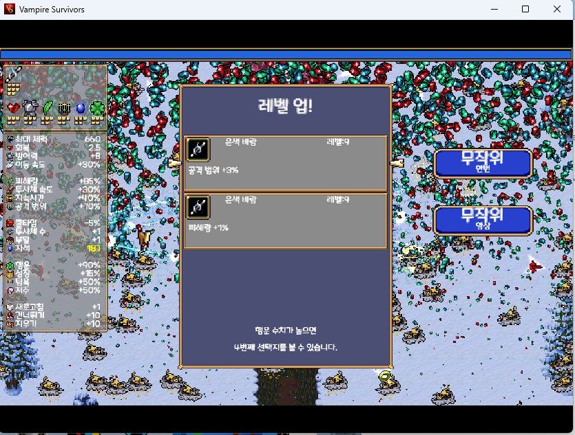 모든 레벨이 만렙이 된다 무작위 항상 선택 하고 있으면