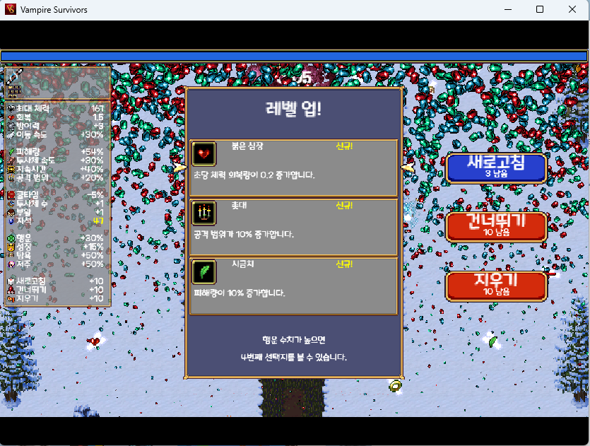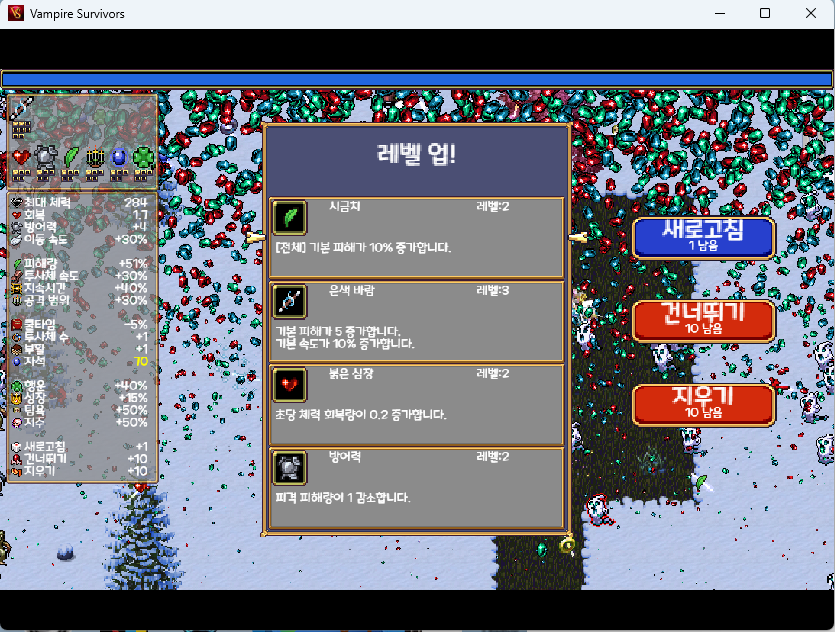 | 뱀파이어 서바이버즈(Vampire Survivors) 뱀파이어 서바이벌 1.2 패치로 변경된점 (2) (0) | 2022.12.21 |