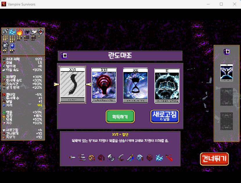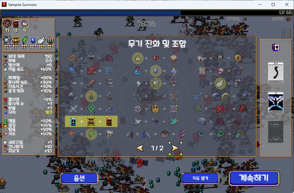 뱀파이어 서바이버즈(Vampire Survivors) 뱀파이어 서바이벌 1.2 패치로 변경된점 (2)